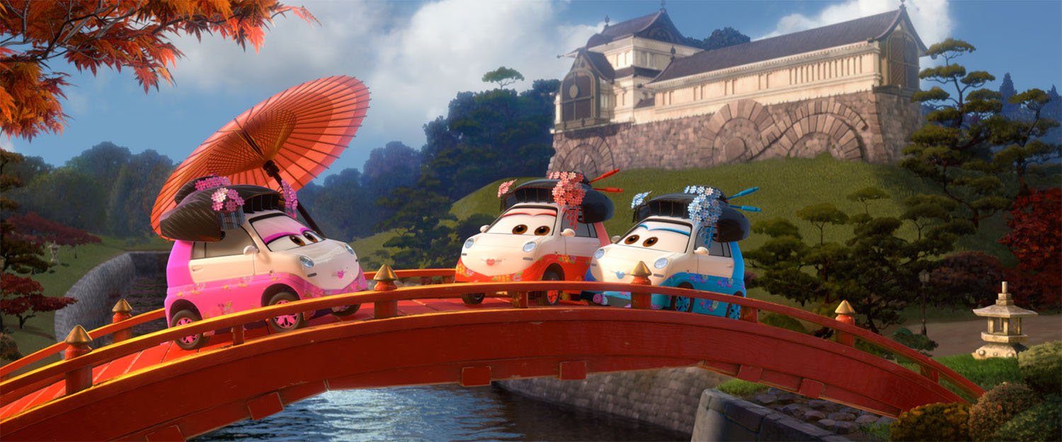 London provided the Cars 2 art team’s biggest challenge, requiring over 50 miles of city streets and thousands of uniquely "car-ified" buildings exhibiting a wide variety of architectural styles. Along with celebrated landmarks like Big Ben and Buckingham Palace, the filmmakers got to make distinctively British characters out of such revered vehicles as Range Rovers, Jaguars, Minis, and the London double-decker bus.