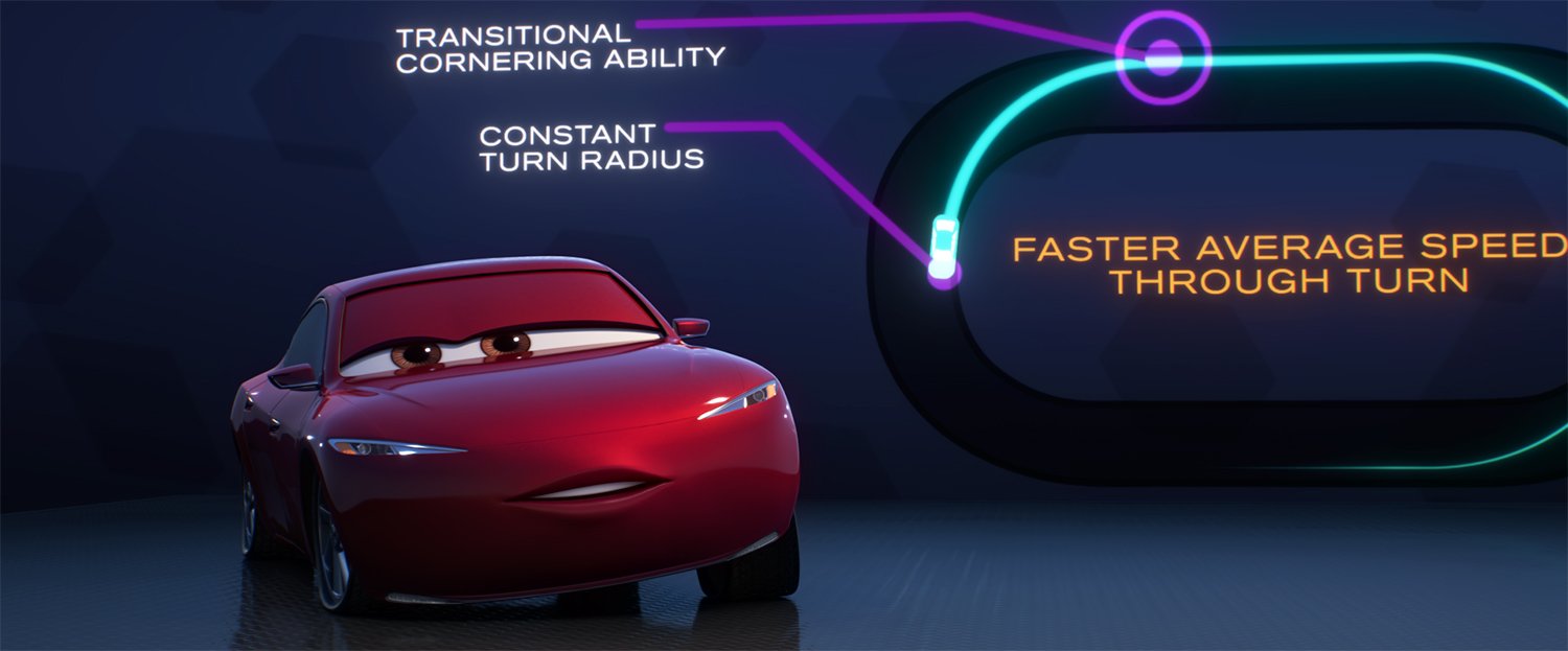 To explore what was next for Lightning McQueen filmmakers consulted NASCAR veterans, including four-time NASCAR champion Jeff Gordon and Ray Evernham, who served as Gordon’s crew chief for three of his championships. Gordon proved to be a key resource. “He talked a lot about how young racers are full of energy,” says co-producer Andrea Warren. “They like to go fast and hard, while a more experienced driver knows he doesn’t have to do that. They get to know the game well enough that they can play it in a different way.”