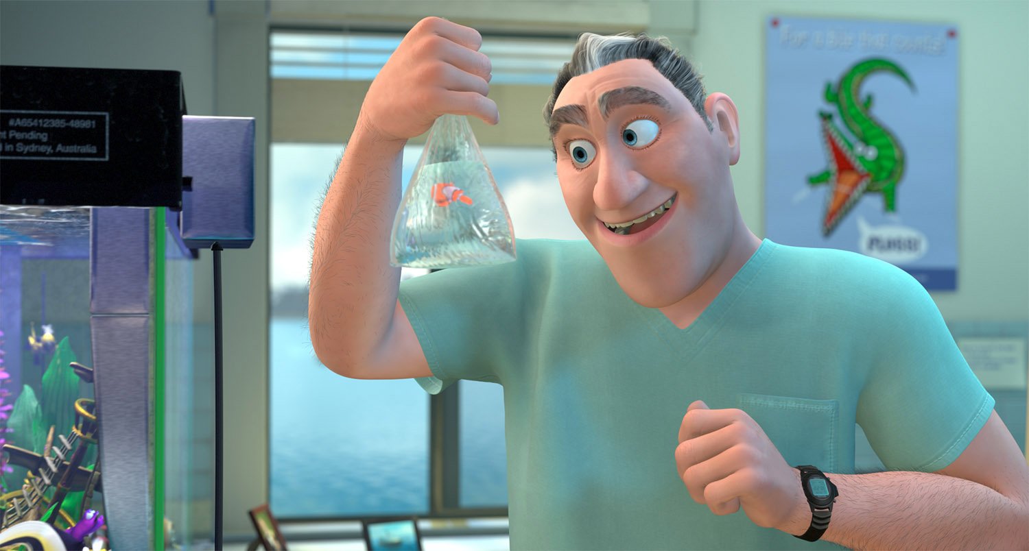 Don't be angry with the dentist for taking Nemo—from his point of view, he was rescuing a struggling fish destined to be eaten. The dentist's niece Darla, on the other hand, can't seem to shake her habit of shaking the bags containing her fishy gifts.