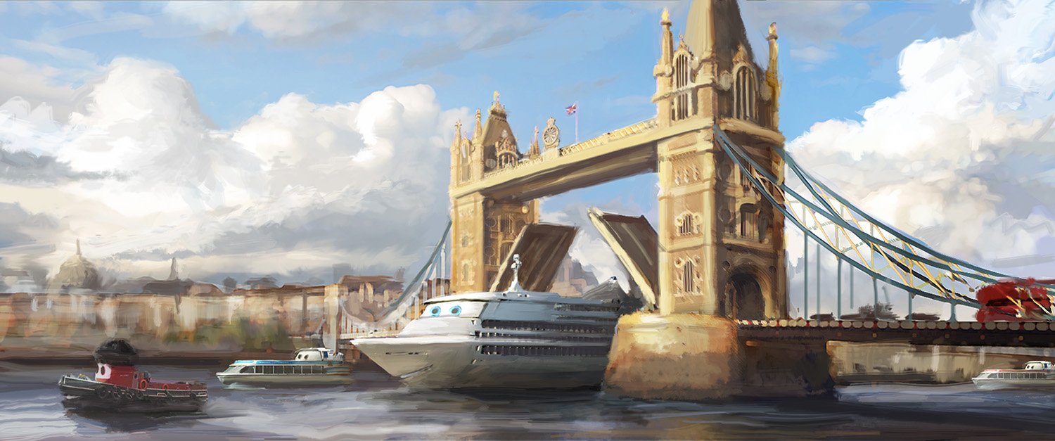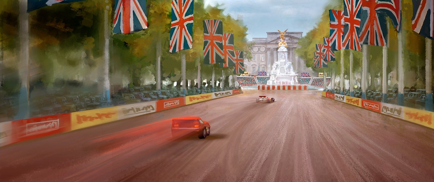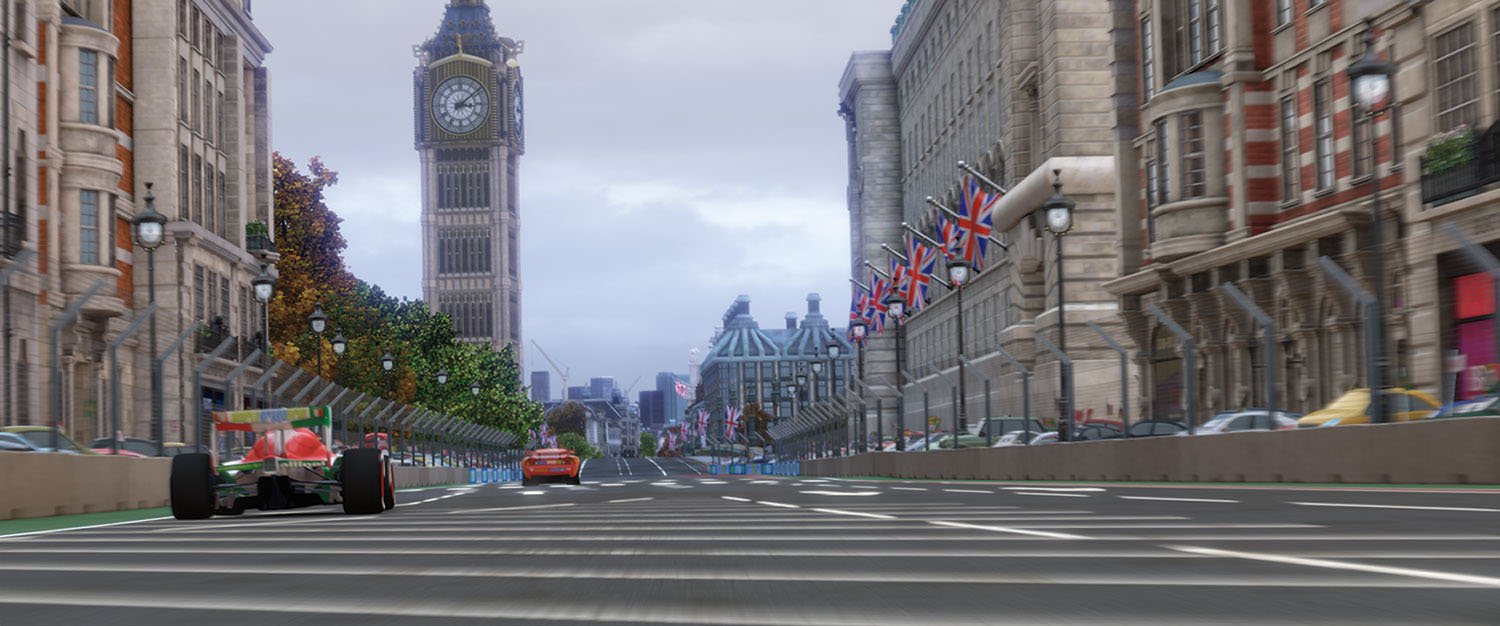 London provided the Cars 2 art team’s biggest challenge, requiring over 50 miles of city streets and thousands of uniquely "car-ified" buildings exhibiting a wide variety of architectural styles. Along with celebrated landmarks like Big Ben and Buckingham Palace, the filmmakers got to make distinctively British characters out of such revered vehicles as Range Rovers, Jaguars, Minis, and the London double-decker bus.