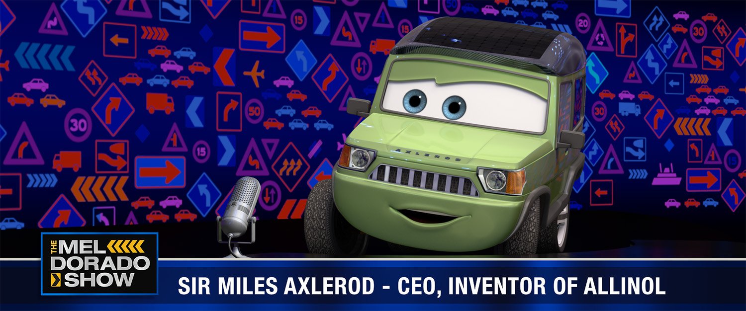 Sir Miles Axlerod is a former oil baron who has sold off his fortune, converted himself into an electric vehicle, and devoted his life to finding the renewable, clean-burning energy source of the future—ultimately discovering what he believes is the fuel everyone should be using. Axlerod is also the creator of the World Grand Prix, a three-country race that attracts the world’s top athletes. But the race is really an excuse to show off his new wonder-fuel, Allinol.