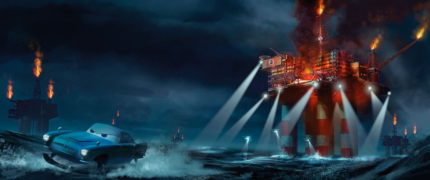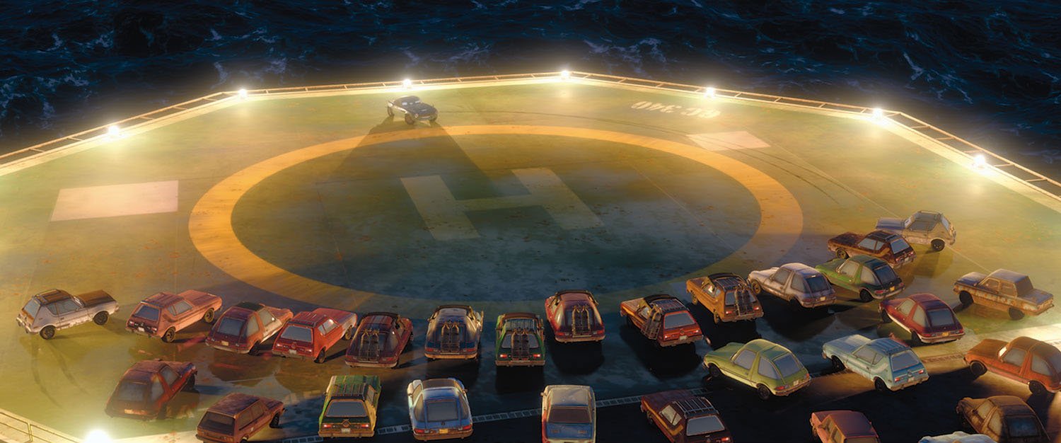 “I really wanted to start off with something that was the complete opposite of what the audience would expect from the sequel to Cars,” said Director John Lasseter. “People are expecting to see Lightning McQueen, Mater, stock car racing, Radiator Springs, Route 66, the Southwest…but instead, the first thing you see is ocean. And then there’s a boat. And out in the middle of the ocean, there’s a little car riding on this boat and he’s looking for another car. You’re thinking, ‘Wait a minute—what’s
