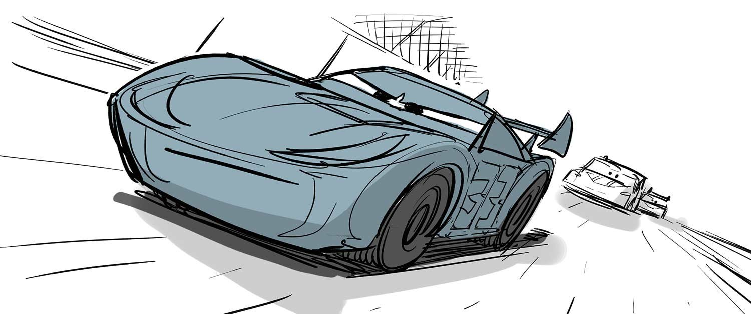 To explore what was next for Lightning McQueen filmmakers consulted NASCAR veterans, including four-time NASCAR champion Jeff Gordon and Ray Evernham, who served as Gordon’s crew chief for three of his championships. Gordon proved to be a key resource. “He talked a lot about how young racers are full of energy,” says co-producer Andrea Warren. “They like to go fast and hard, while a more experienced driver knows he doesn’t have to do that. They get to know the game well enough that they can play it in a different way.”
