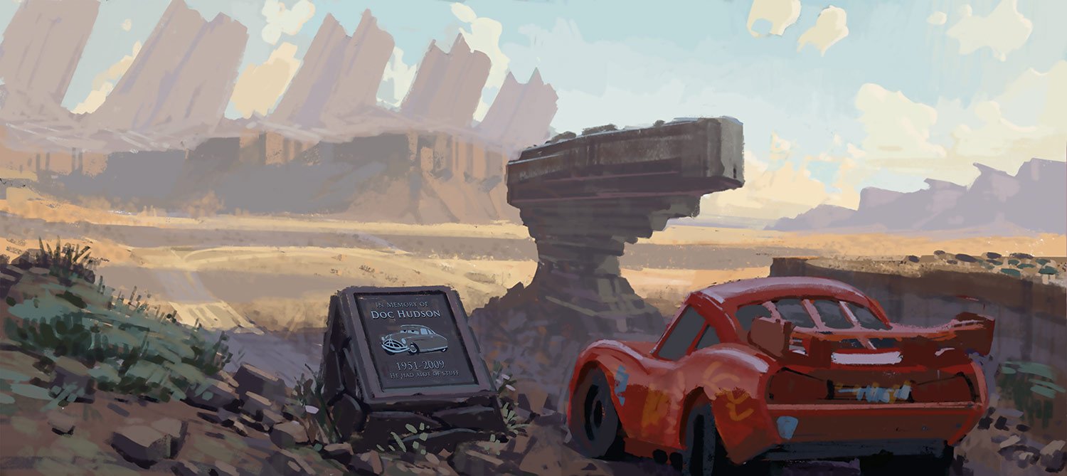 “This is a world we believe exists,” says production designer Bill Cone. “It’s familiar. The term we use is believability, which is the basis for everything we do. The world of ‘Cars’ is built to accommodate its car-sized population. It is stylized. We’ve played with some metaphorical elements—cars see themselves in nature the way man sees himself in nature. It’s all done in a way that is as relatable as it is compelling.”