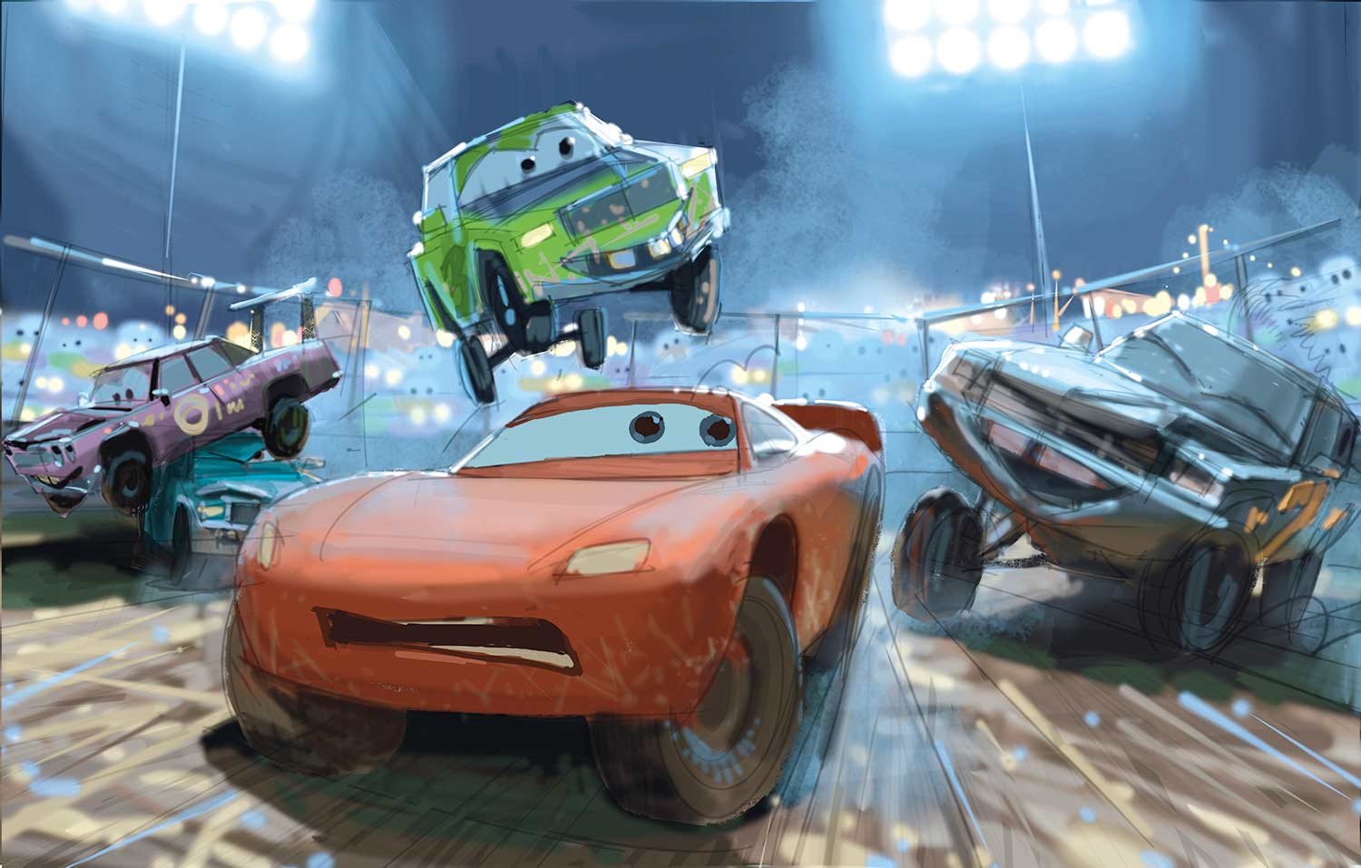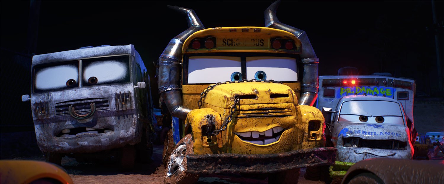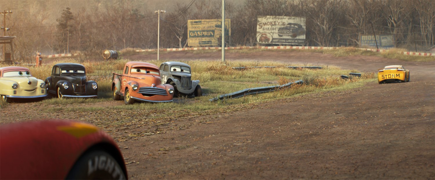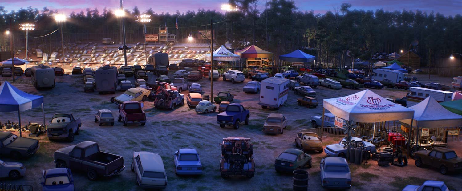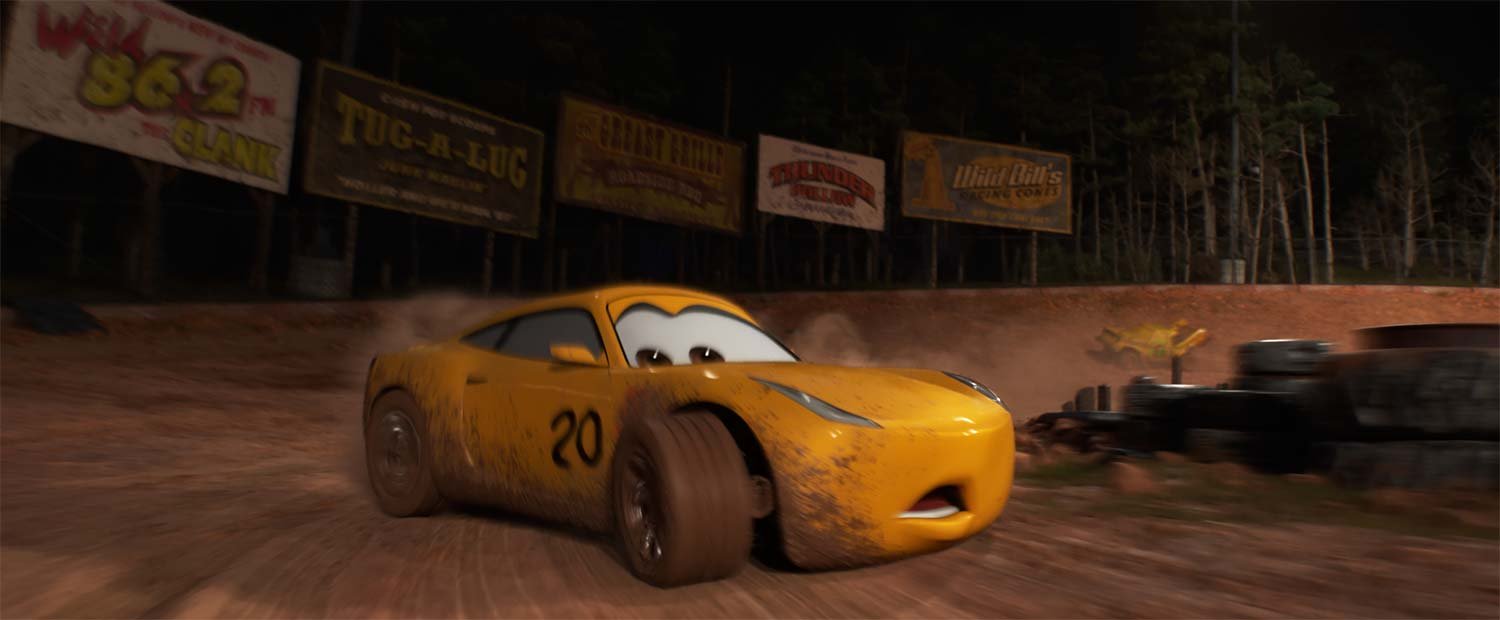 Lightning McQueen and Cruz Ramirez yearn to take part in a down-and-dirty race to reignite the passion Lightning’s lost. Unfortunately, they end up in the midst of a Crazy 8—which is certainly dirty. To achieve the right look and feel for the sequence, filmmakers actually went to a night race that took place on a dirt track. “They were covered in dirt,” says Cone. “It was inspiring.”