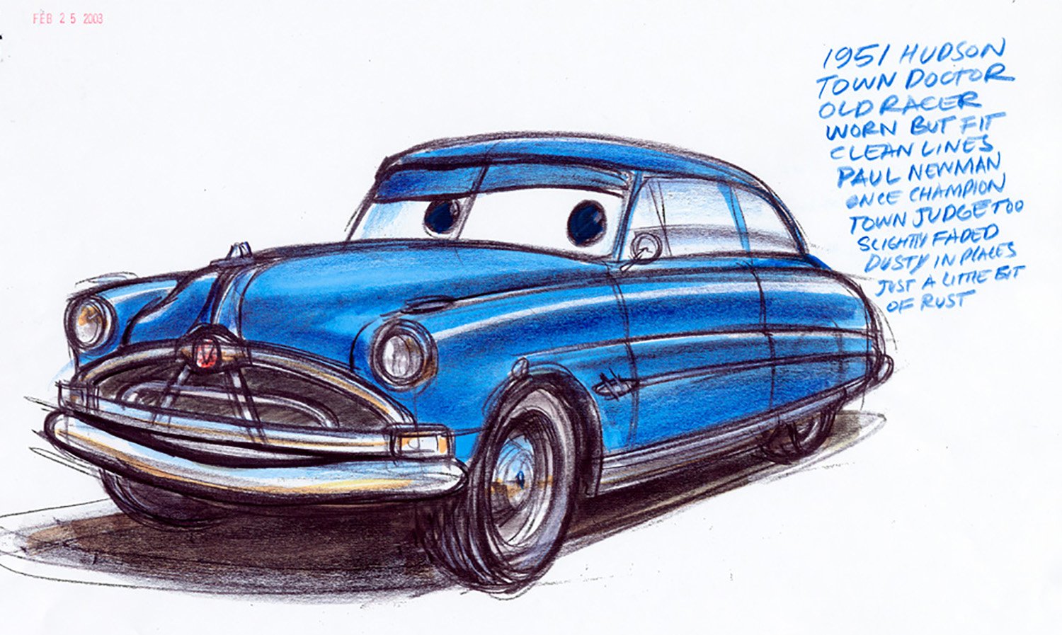 Doc Hudson is a 1951 Hudson Hornet, a quiet country doctor with a mysterious past. A cornerstone of Radiator Springs, Doc runs the local medical clinic and serves as the town judge. But when Lightning McQueen rolls through town, Doc's old competitive engine gets revved up once more.