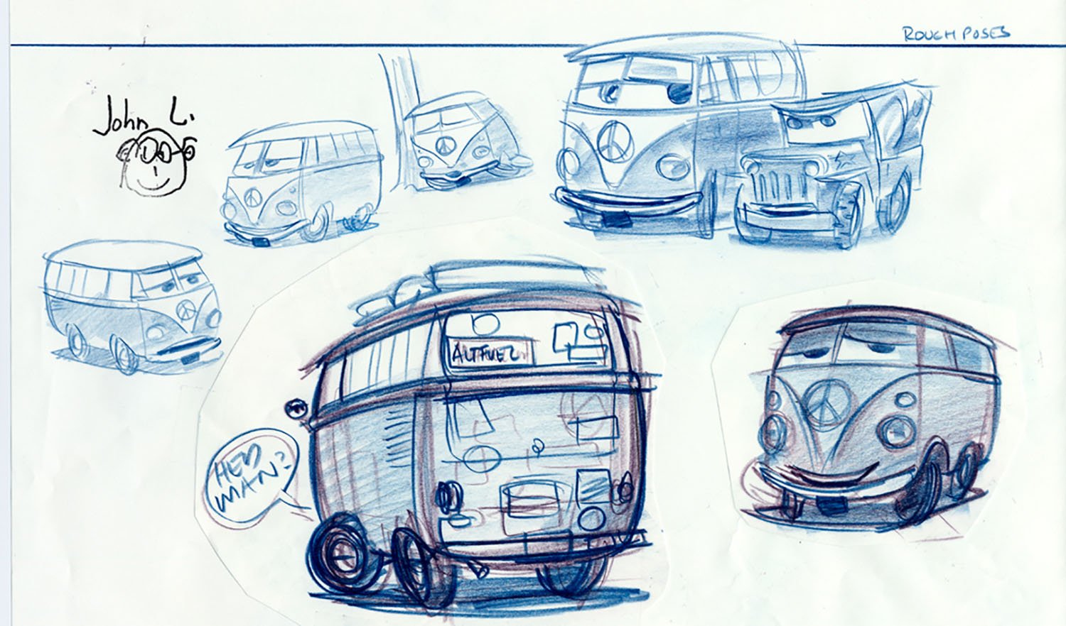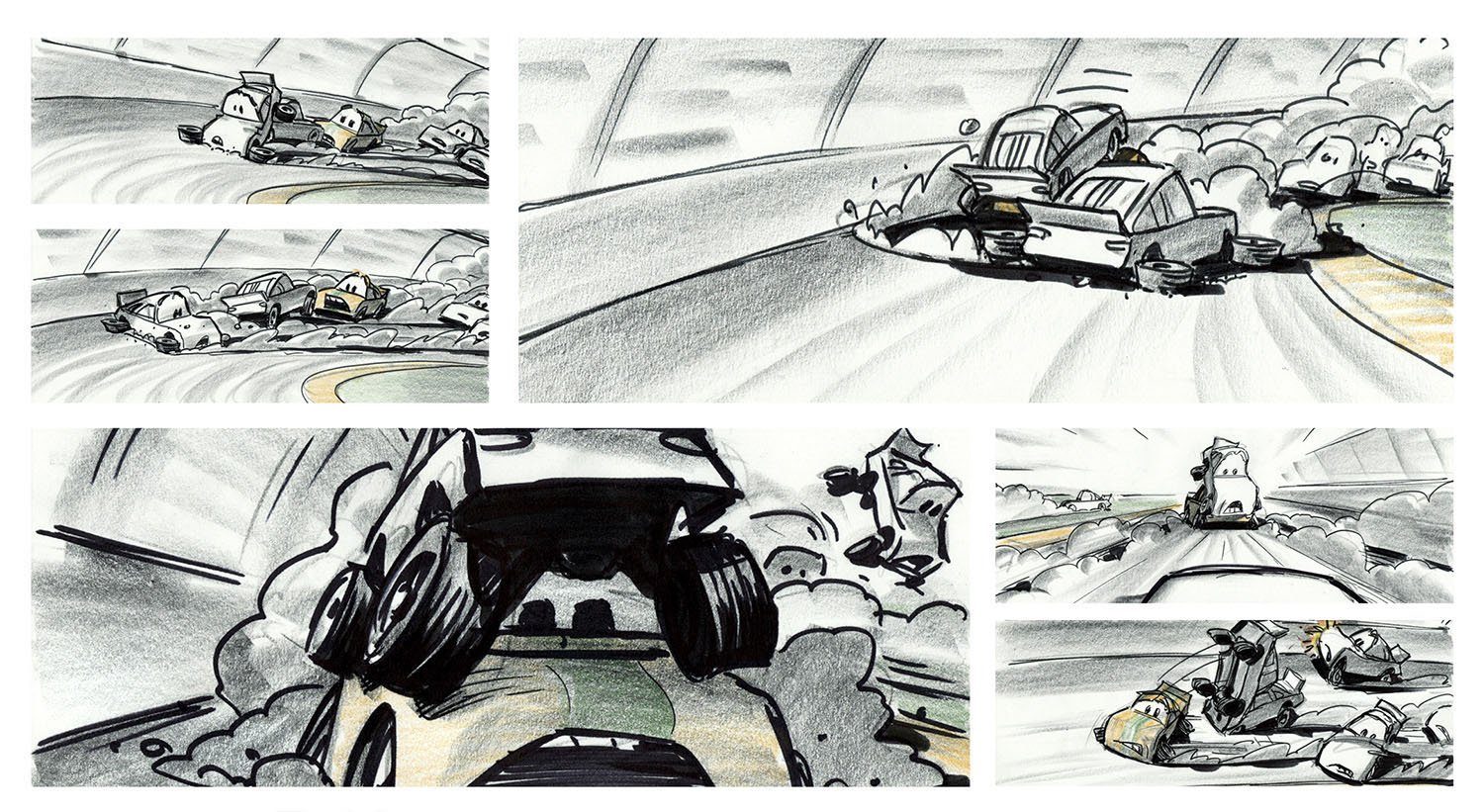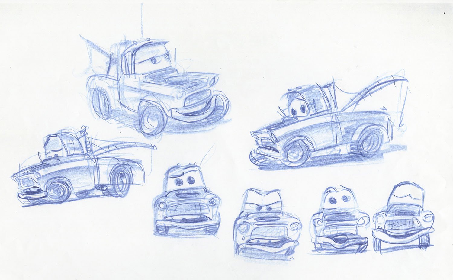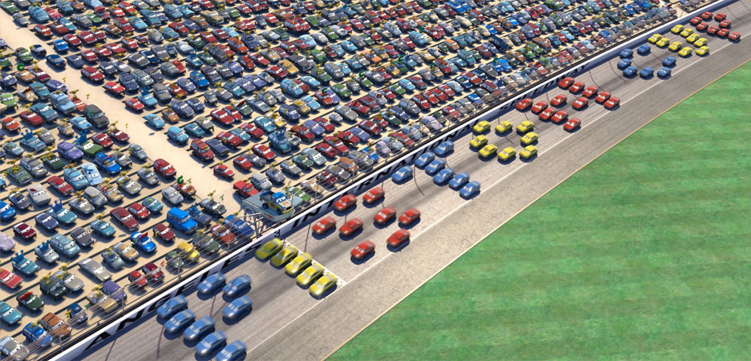 According to John Lasseter, more research went into Cars than any other project at Pixar to date. Field trips ranged from leisurely journeys across Route 66 to the fast lane of the Charlotte Motor Speedway, where a couple of infield fans named Larry and Mater would charm their way into the film. A Pixar team also traveled to the automotive mecca of Detroit to see how cars are designed and assembled from the ground up. Pixar artists used thousands of still photos and hours of car footage to give Cars the level of detail it would need on the big screen.