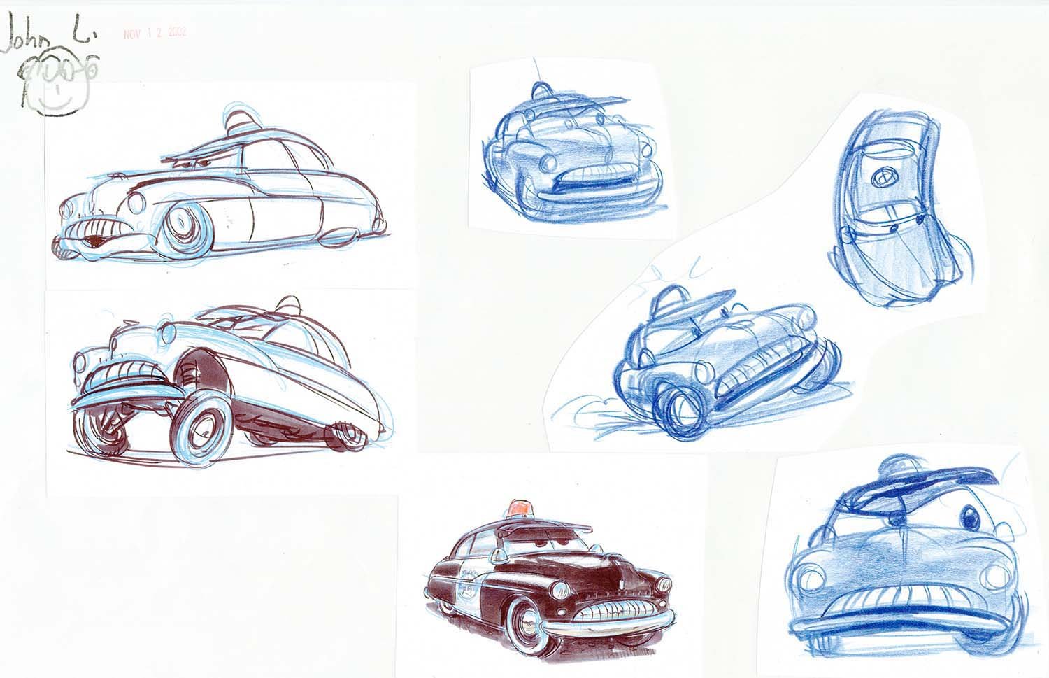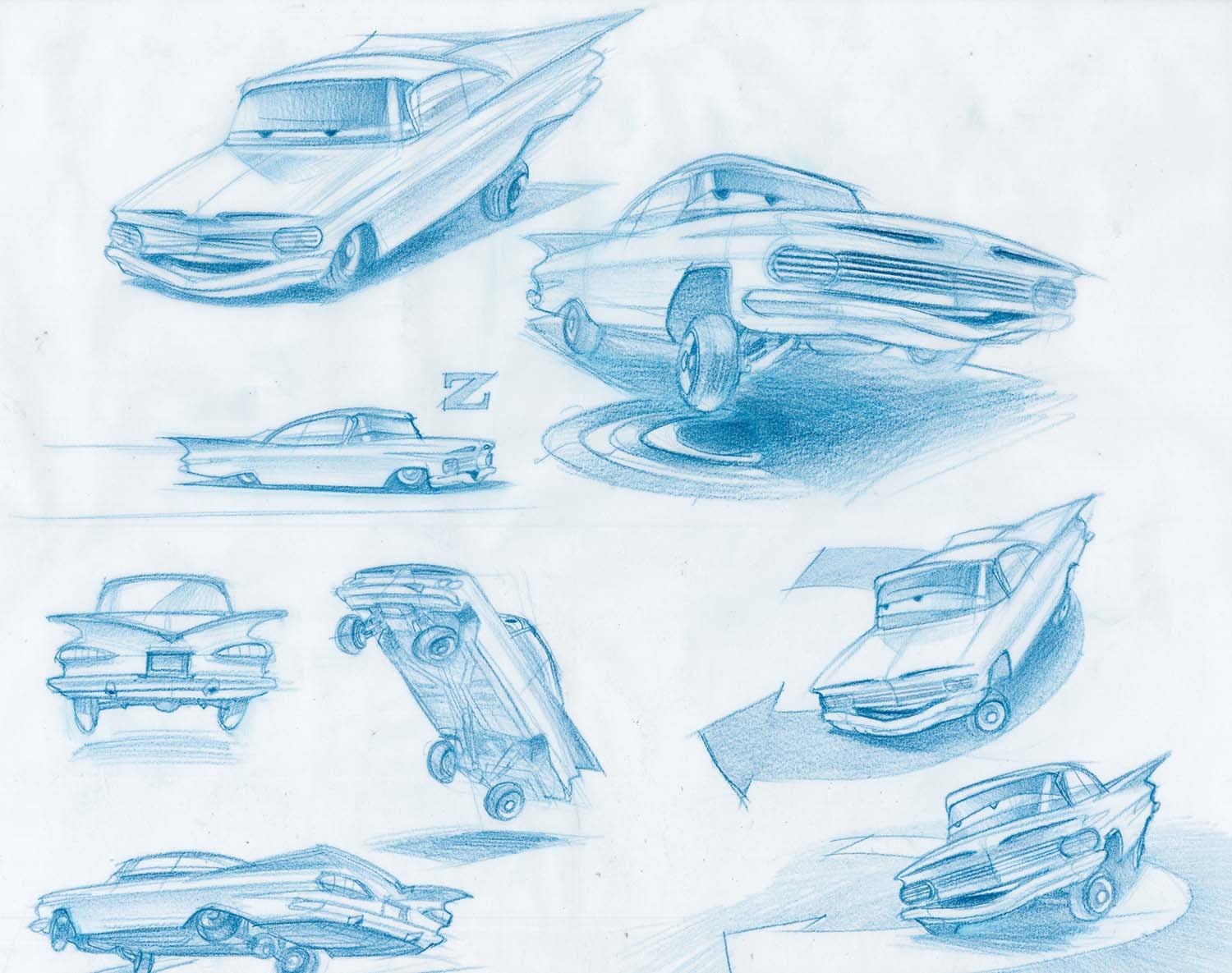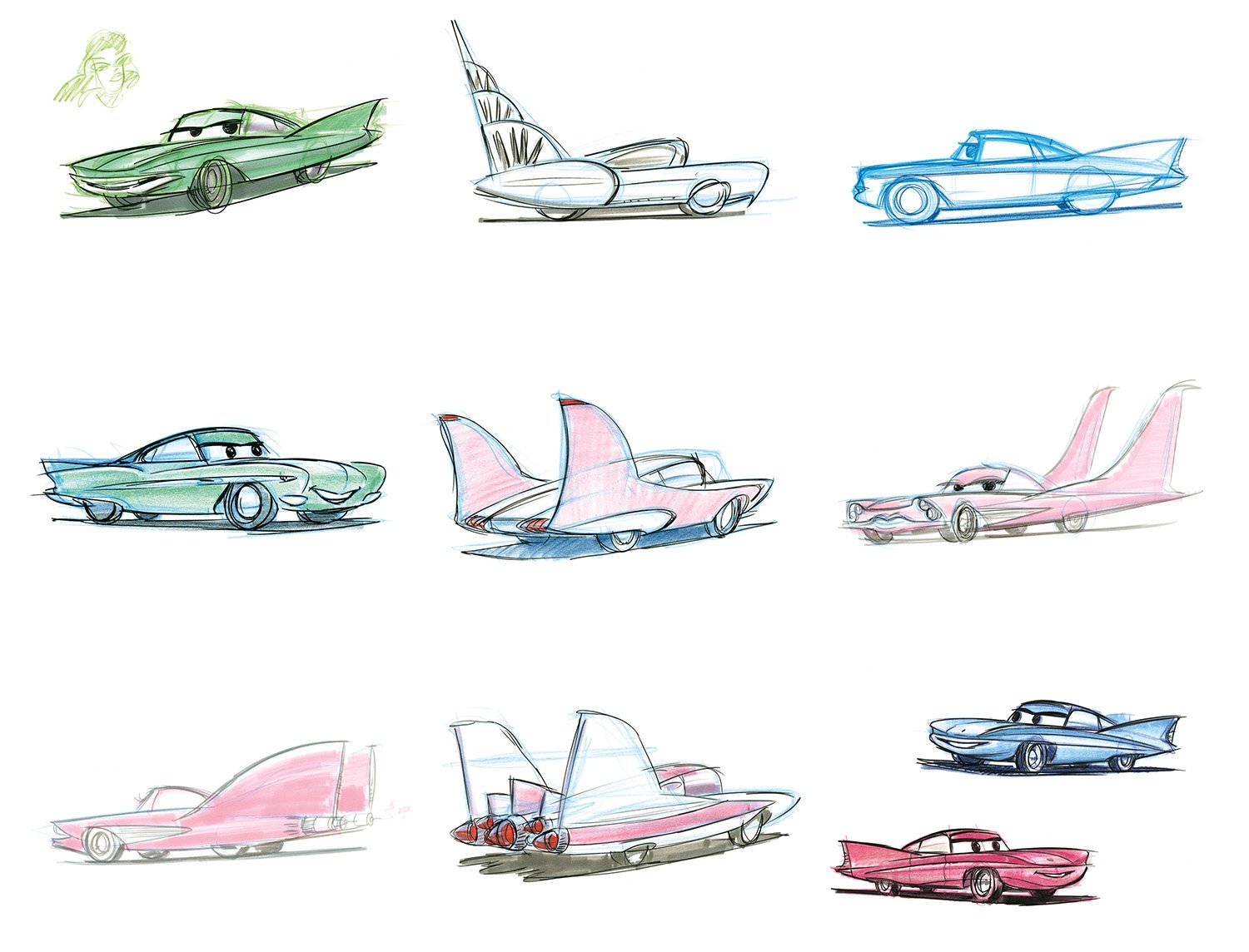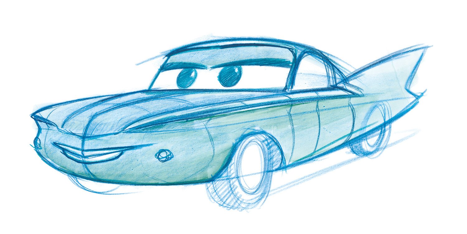 It took three days to prepare the first drawings that would define the Cars landscape. Working from an early inspiration board of automobile and desert references, Production Designer Bill Cone came up with an idea; he spent the day, and that night, thinking of how it could work. Then he rendered several sketches to illustrate his concept that cars, like humans, would shape the world around them as monuments that echoed their likeness. That happened back in 2000, and twelve years later, the landscape became real for generations to visit at Disney’s