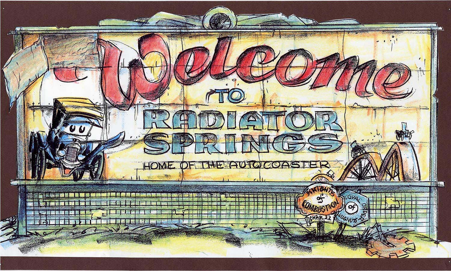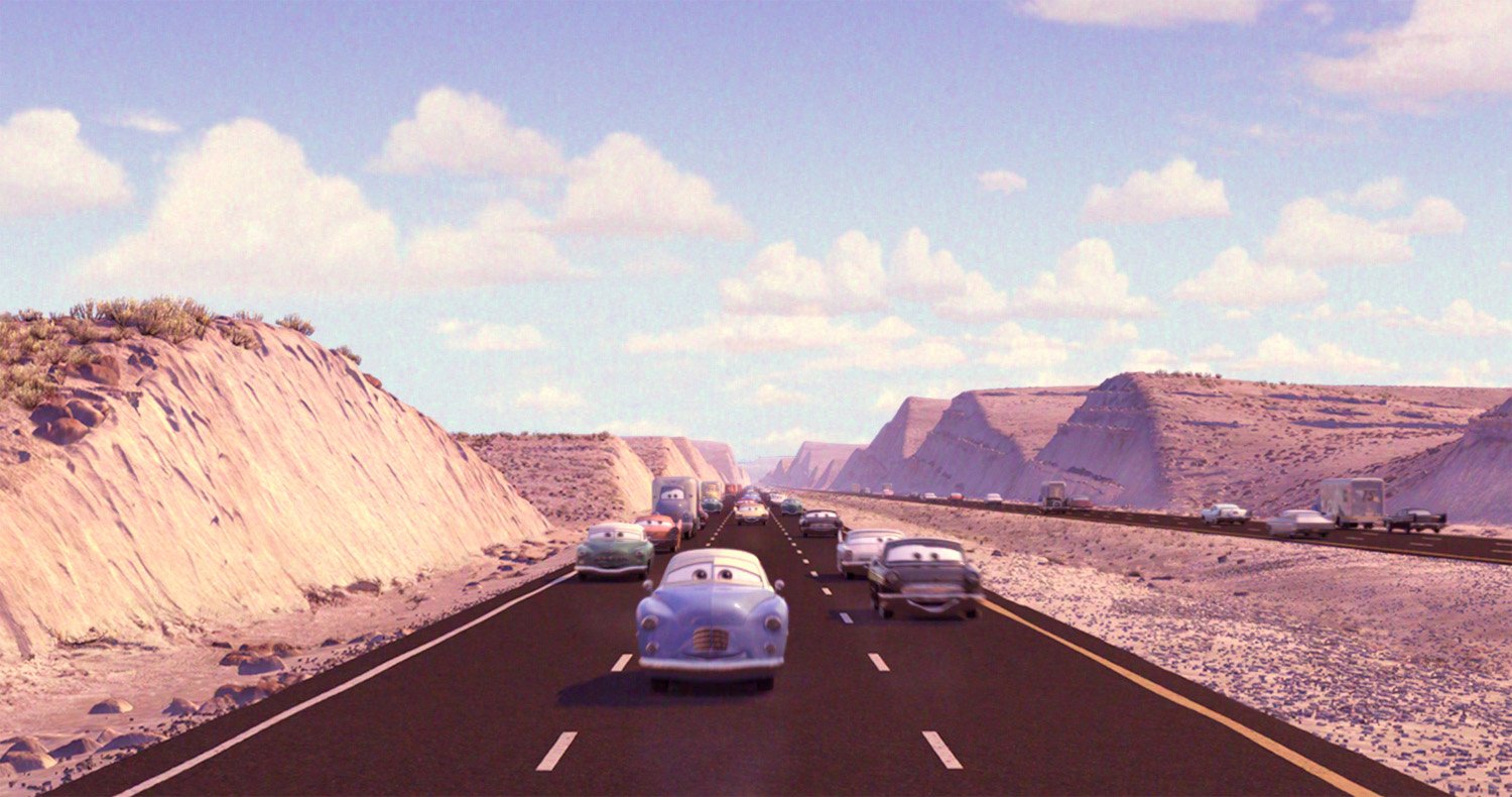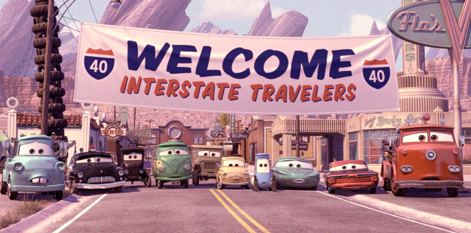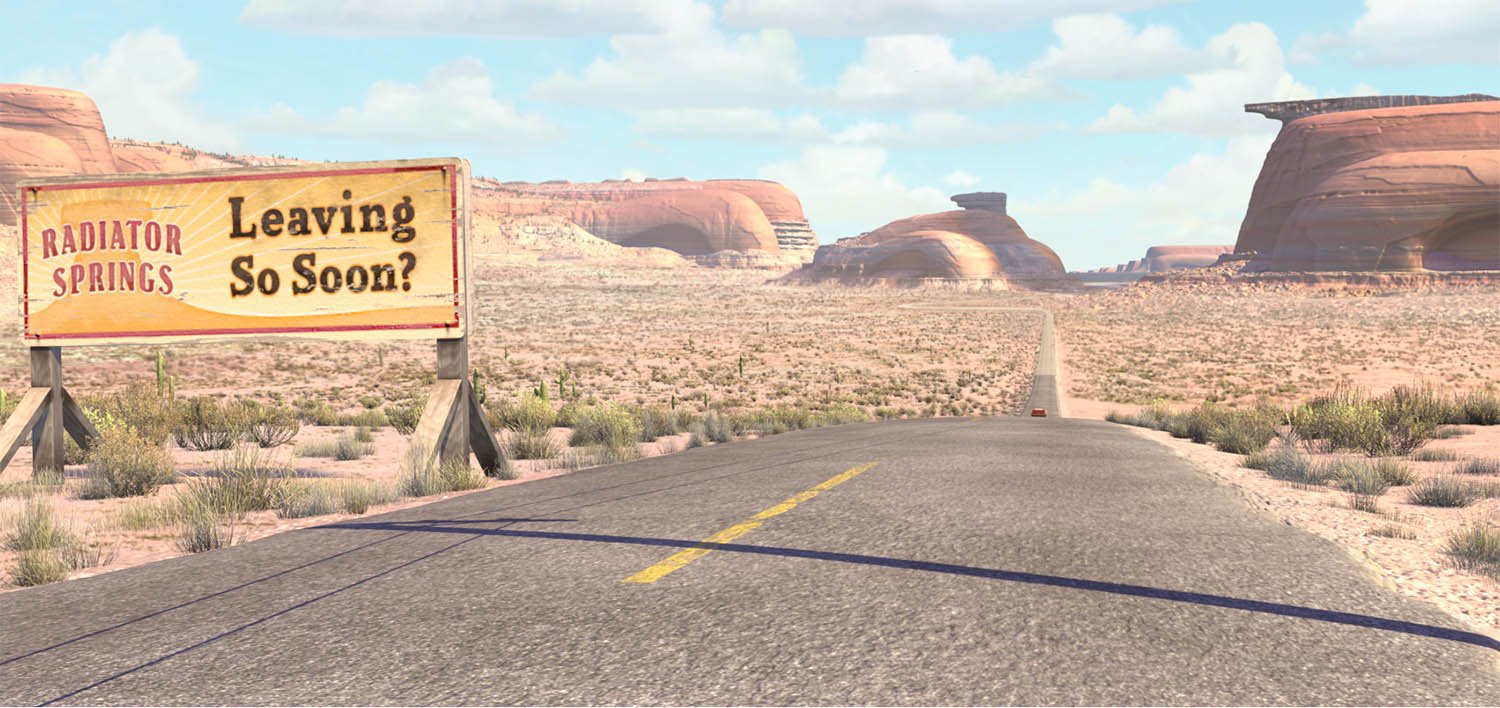 Memorable research trips along Route 66 led the Pixar team to create the town of Radiator Springs in a high desert setting somewhere between Gallup, New Mexico, and Kingman, Arizona, where towns of broken neon, peeling paint, and colorful denizens still exist. “We connected with the people and their towns and we really got it,” Co-Director and Story Supervisor Joe Ranft observed. “We found out that life out on that old highway is never predictable, and that is what makes the journey so much more memorable. We found the heartbeat of the Mother Road.”