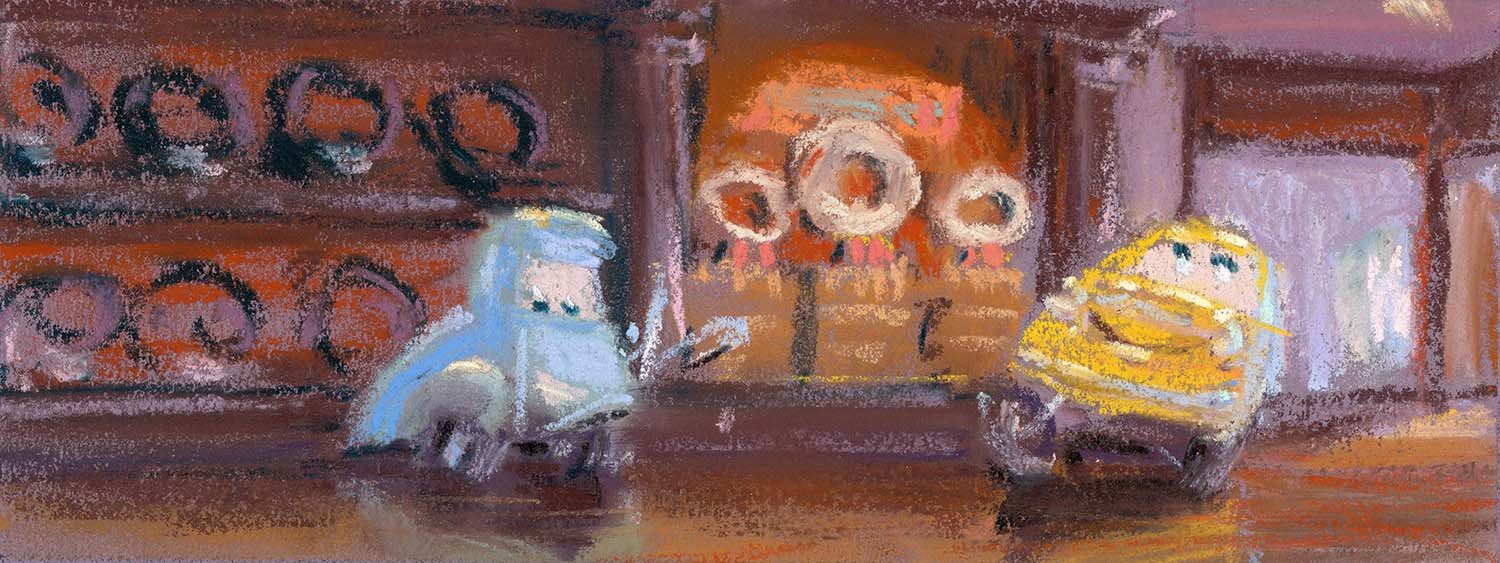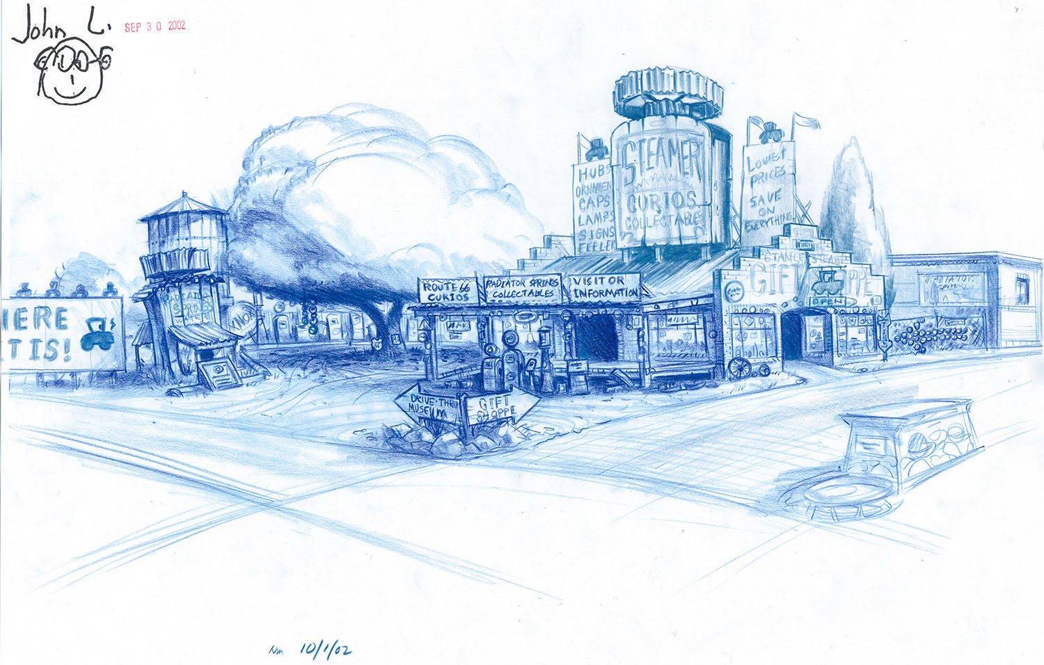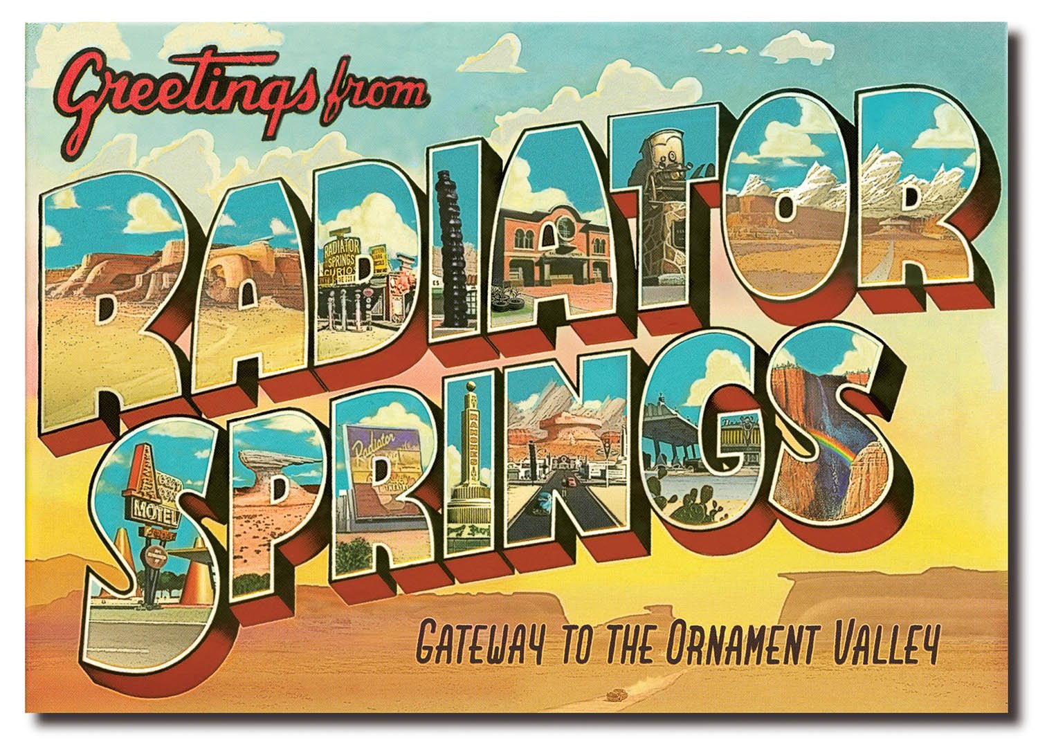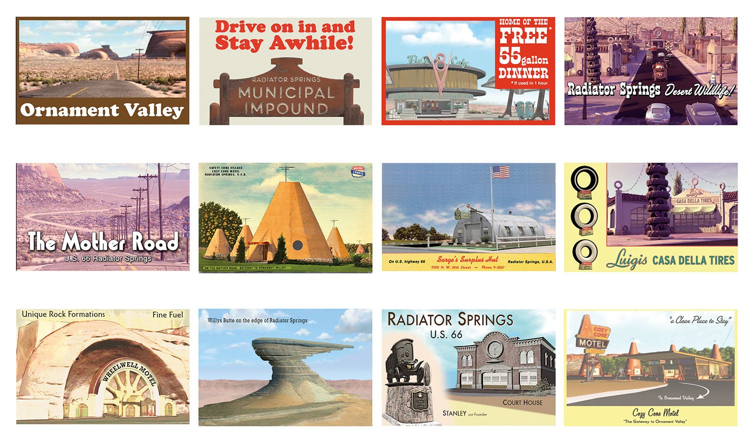 Memorable research trips along Route 66 led the Pixar team to create the town of Radiator Springs in a high desert setting somewhere between Gallup, New Mexico, and Kingman, Arizona, where towns of broken neon, peeling paint, and colorful denizens still exist. “We connected with the people and their towns and we really got it,” Co-Director and Story Supervisor Joe Ranft observed. “We found out that life out on that old highway is never predictable, and that is what makes the journey so much more memorable. We found the heartbeat of the Mother Road.”