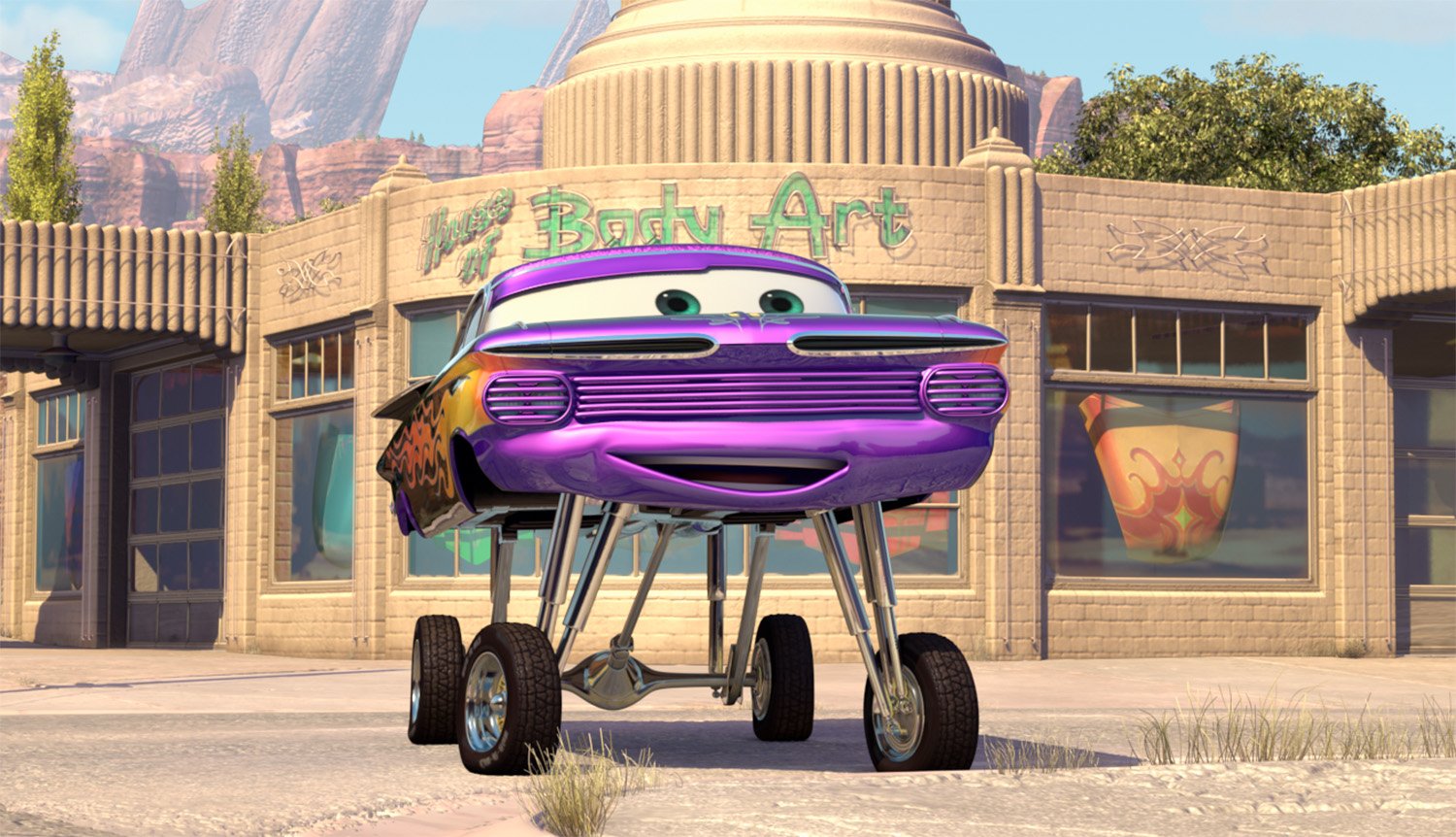 Ramone is a 1959 Impala low-rider and the owner and proprietor of Ramone's House of Body Art, the local custom body and paint shop. Ramone has formed the habit of repainting himself daily because he hasn't had a real customer in years.