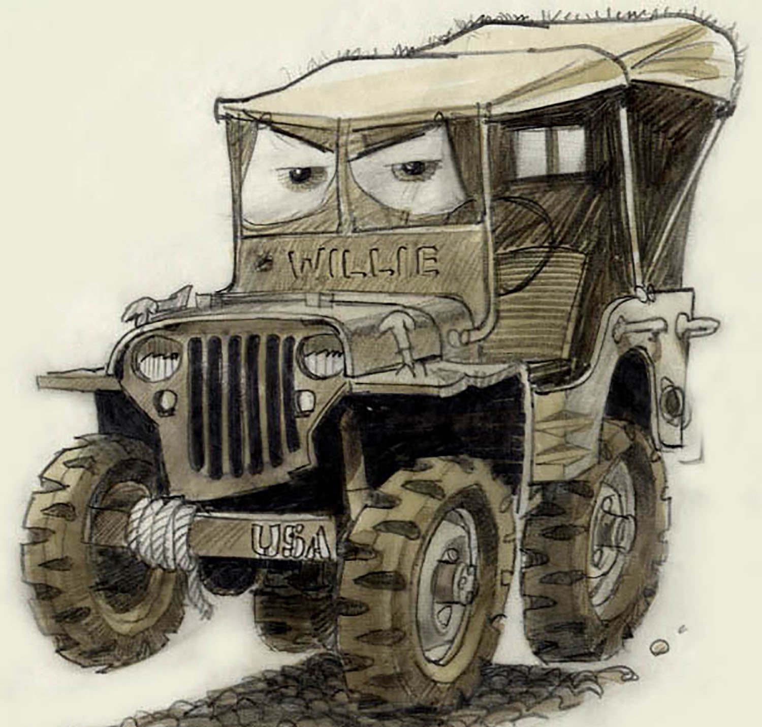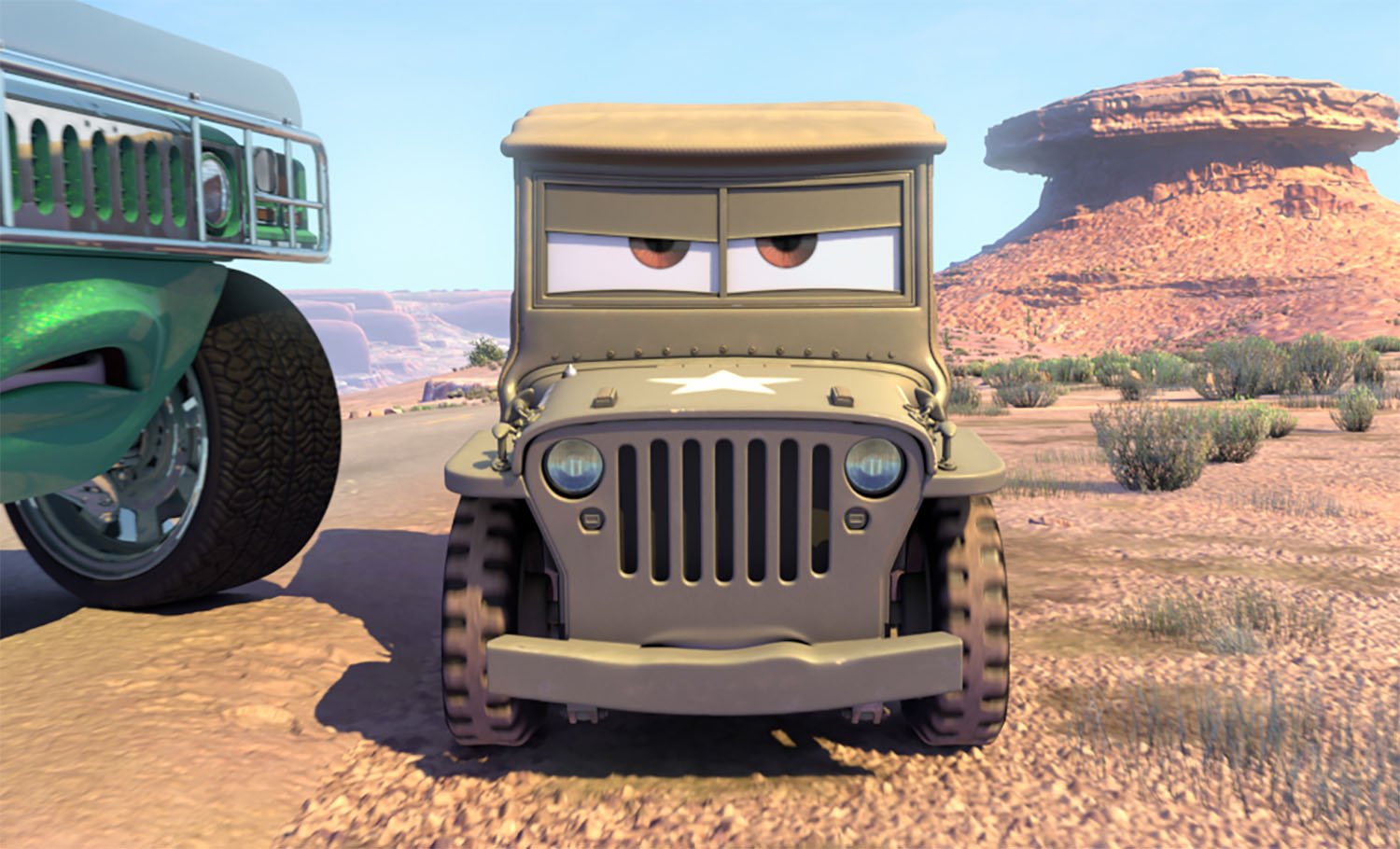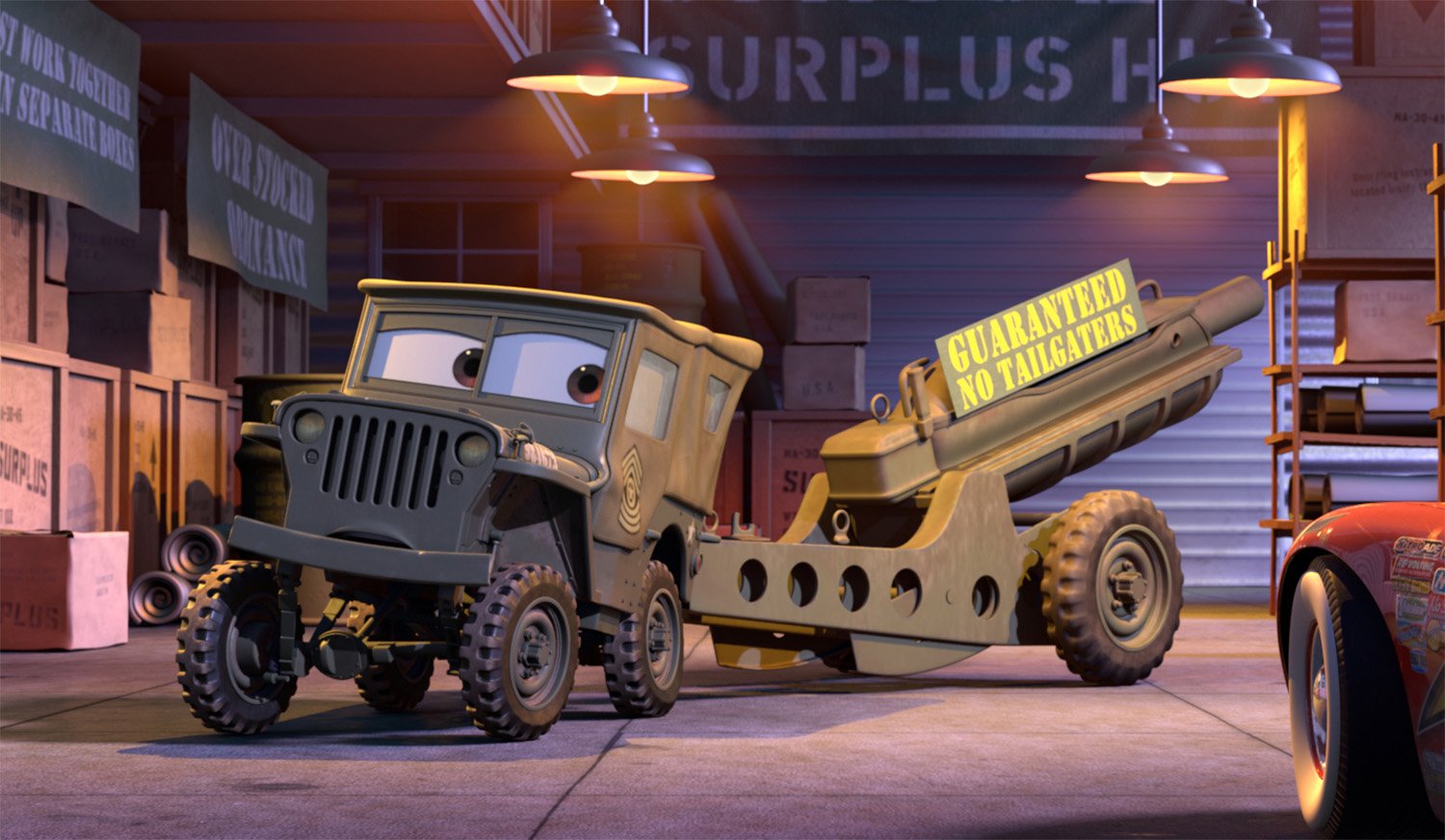 Sarge is a 1942 Willys Army Jeep and a patriotic veteran to the core. He proudly flies the Stars and Stripes and begins each day with a rousing rendition of reveille. When he's not running Sarge's Surplus Hut, he can be found precisely manicuring the lawn in front of his Quonset garage into a perfect flattop.