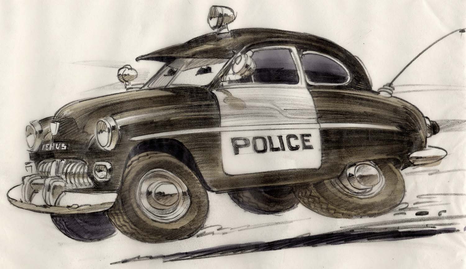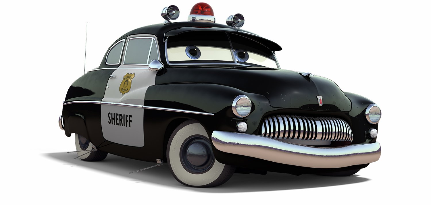 Sheriff is a 1949 Mercury Police Cruiser. As Radiator Springs' resident peacekeeper, he takes his job very seriously. Between his law enforcement duties and the stories he tells about his beloved Mother Road, it is no surprise that Sheriff can often be found napping behind the Radiator Springs billboard.