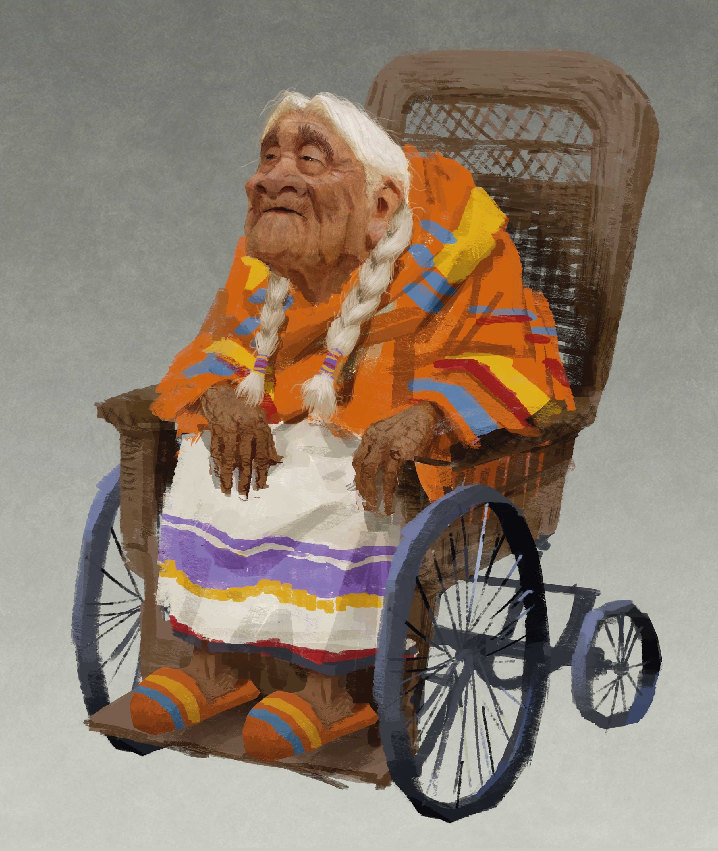 Abuelita is Miguel’s grandmother and the ultimate enforcer of the Rivera family rules. She loves her family very much and will do anything to protect them. But when she gets angry, she wields a mean shoe. “Abuelita is the torchbearer when it comes to the family’s rule where music is concerned,” says director Lee Unkrich. “She can be warm and loving one moment and sharp-tongued and strict the next. That’s what’s so entertaining about her—you never know what you’re going to get.”
