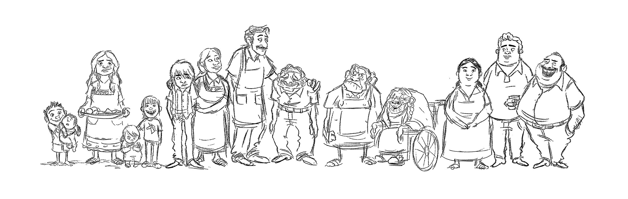Tía Rosita, his great-grandfather Papá Julio and his identical twin uncles Tío Oscar and