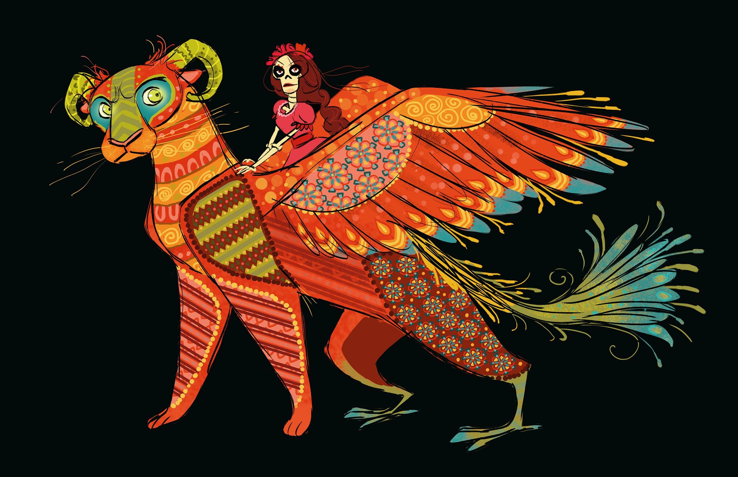 Pepita is an alebrije who fills the role of Mamá Imelda’s spirit guide. Brightly colored and fiercely loyal, Pepita is a formidable presence in the Land of the Dead. An imposing wildcat with eagle talons and impressive wings, Pepita is an alebrije brought-to-life. “Alebrijes are traditional brightly colored and handcrafted Mexican folk art,” says story supervisor Jason Katz. “They’re dreamlike animals—lizards with rabbit ears, elephants with butterfly wings—beautifully rendered with striking colors, and we knew from the moment we saw them that they needed to have a place in our story.”