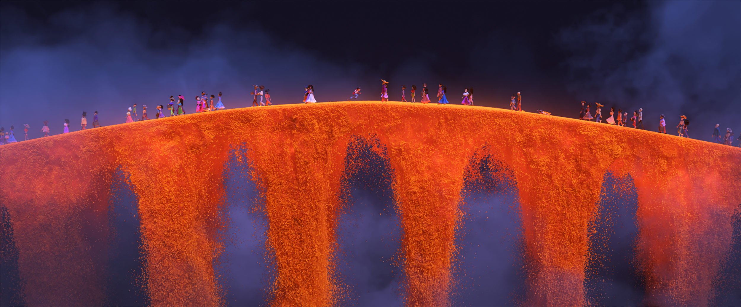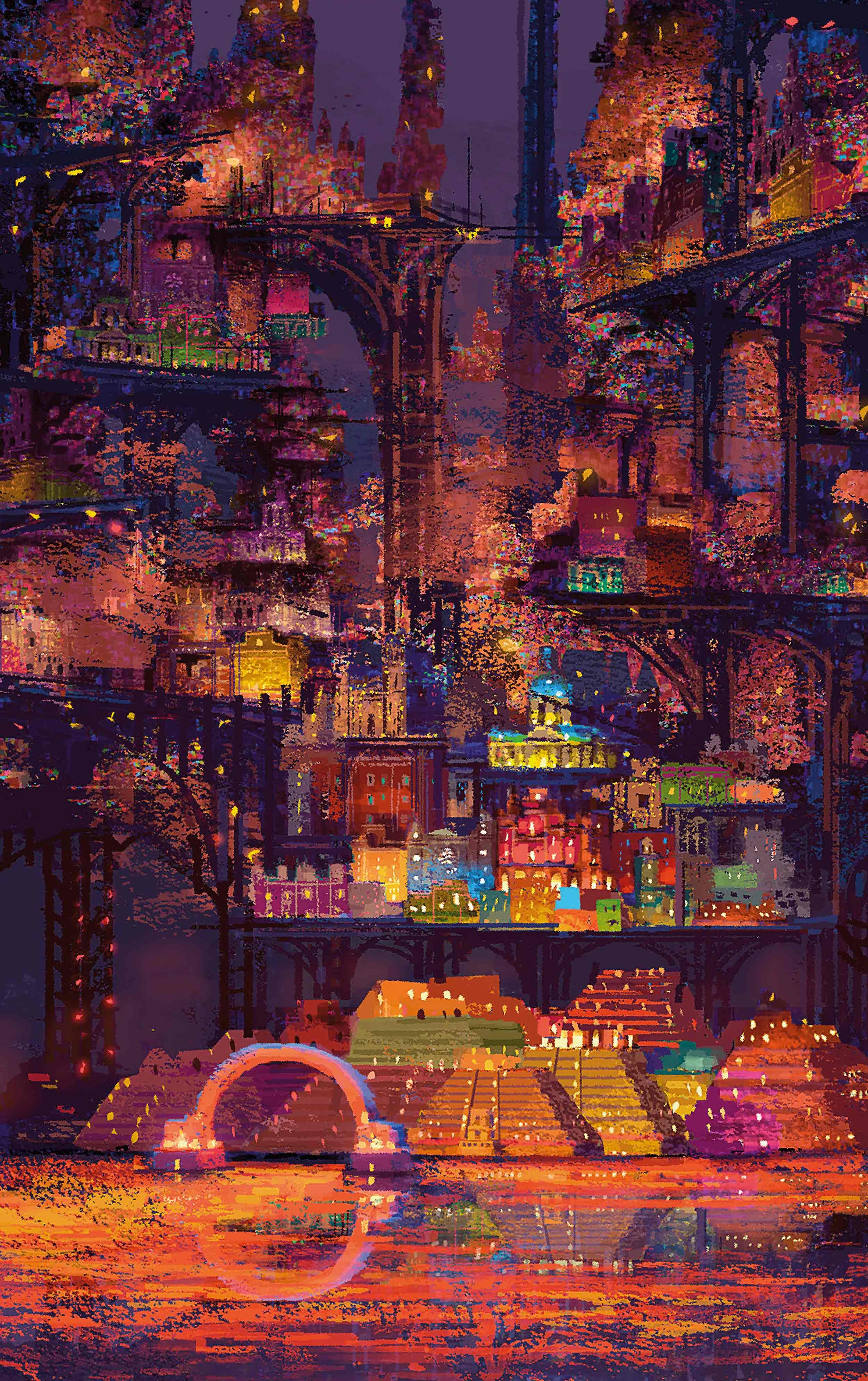Filmmakers looked to Mexico City’s ancient history. The city was originally built on the site of the Aztec city of Tenochtitlán, which was surrounded by water. And while that water has mostly disappeared, artists found the idea very compelling—a city literally sprung from the water. “That lent itself to this idea of towers,” says Unkrich. “Almost like coral growing up and out representing layers of history.”