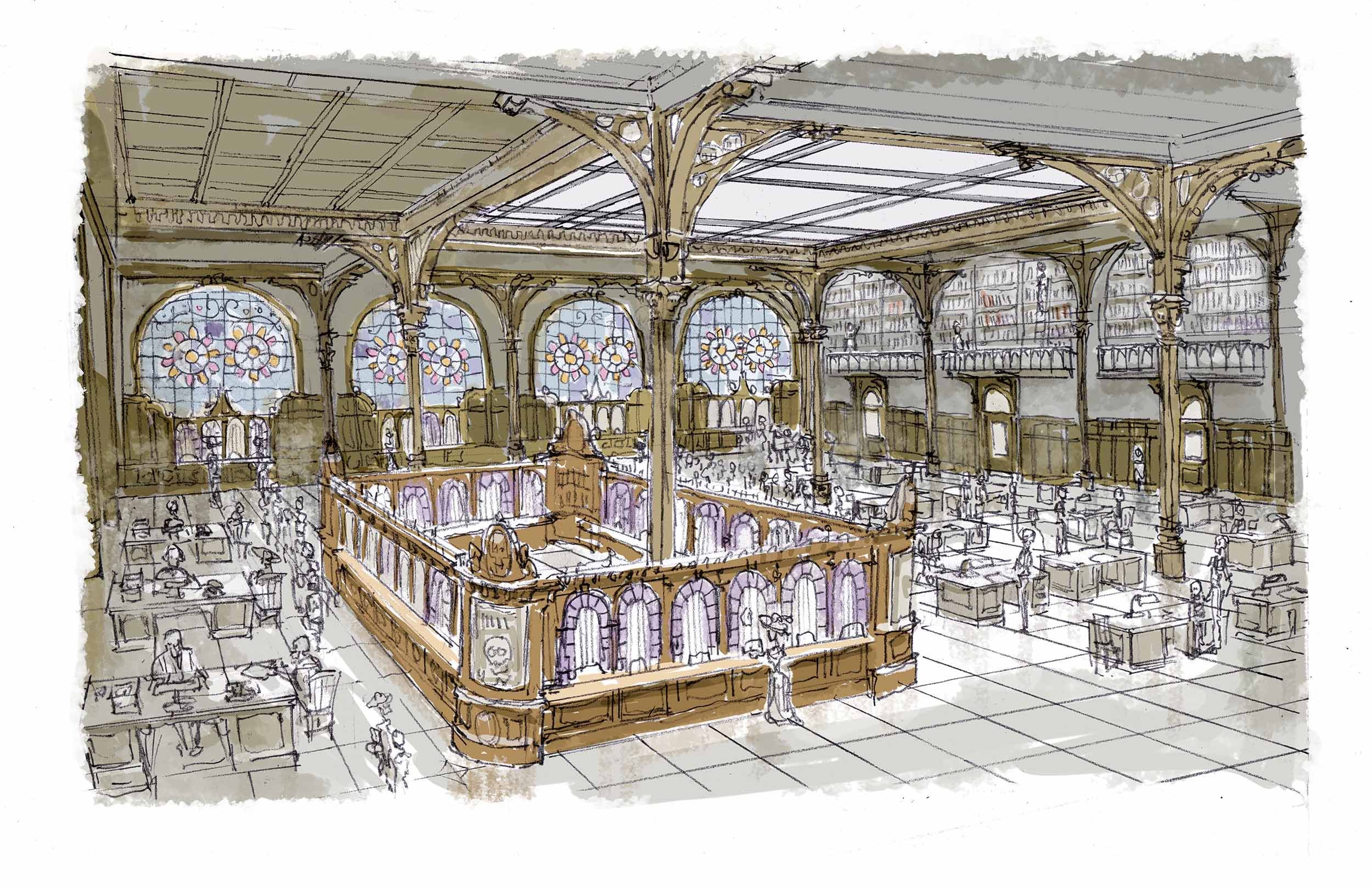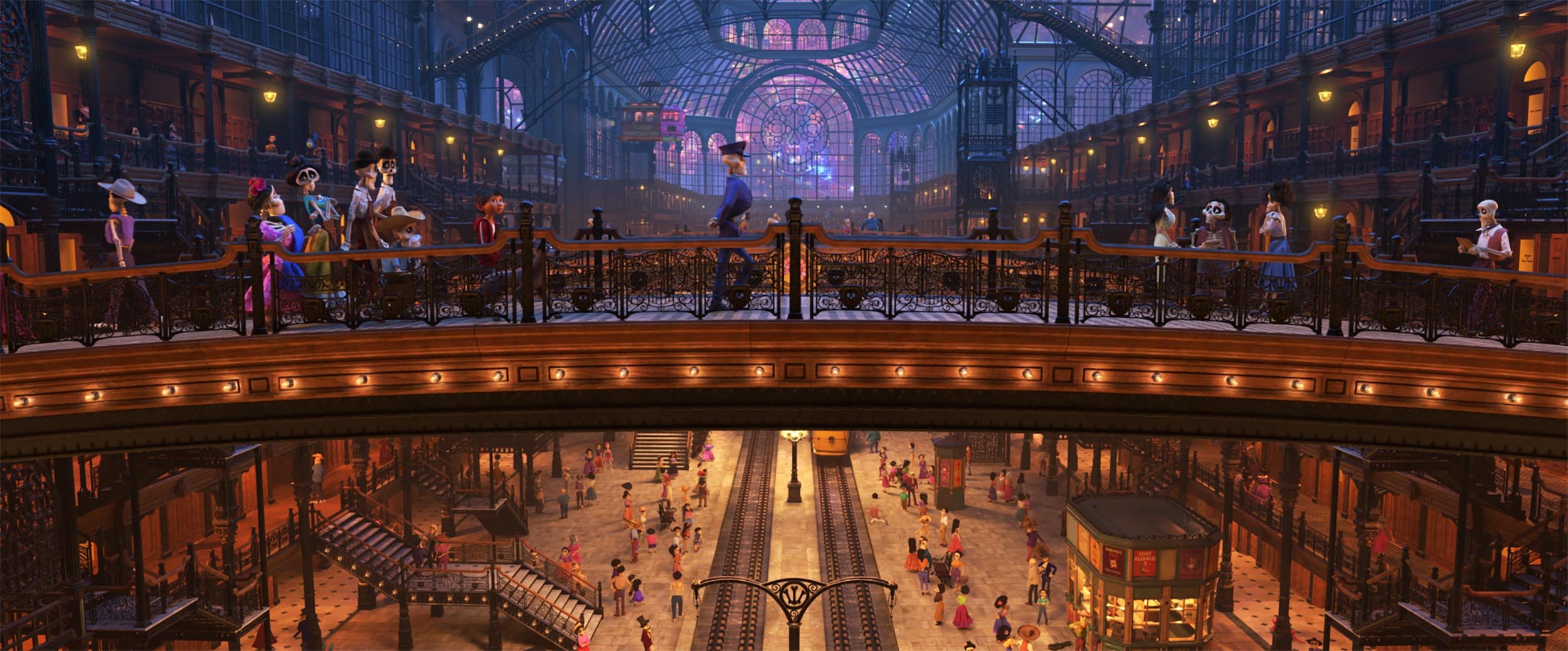 Located within Marigold Grand Central Station is the Department of Family Reunions, where all of the family records are kept. According to Production Designer Harley Jessup, the space is designed in the spirit of a “Victorian DMV,” with skull and skeleton motifs incorporated into the architecture.