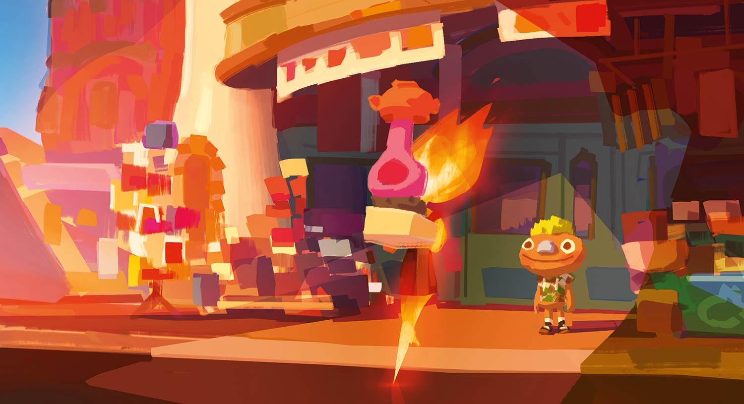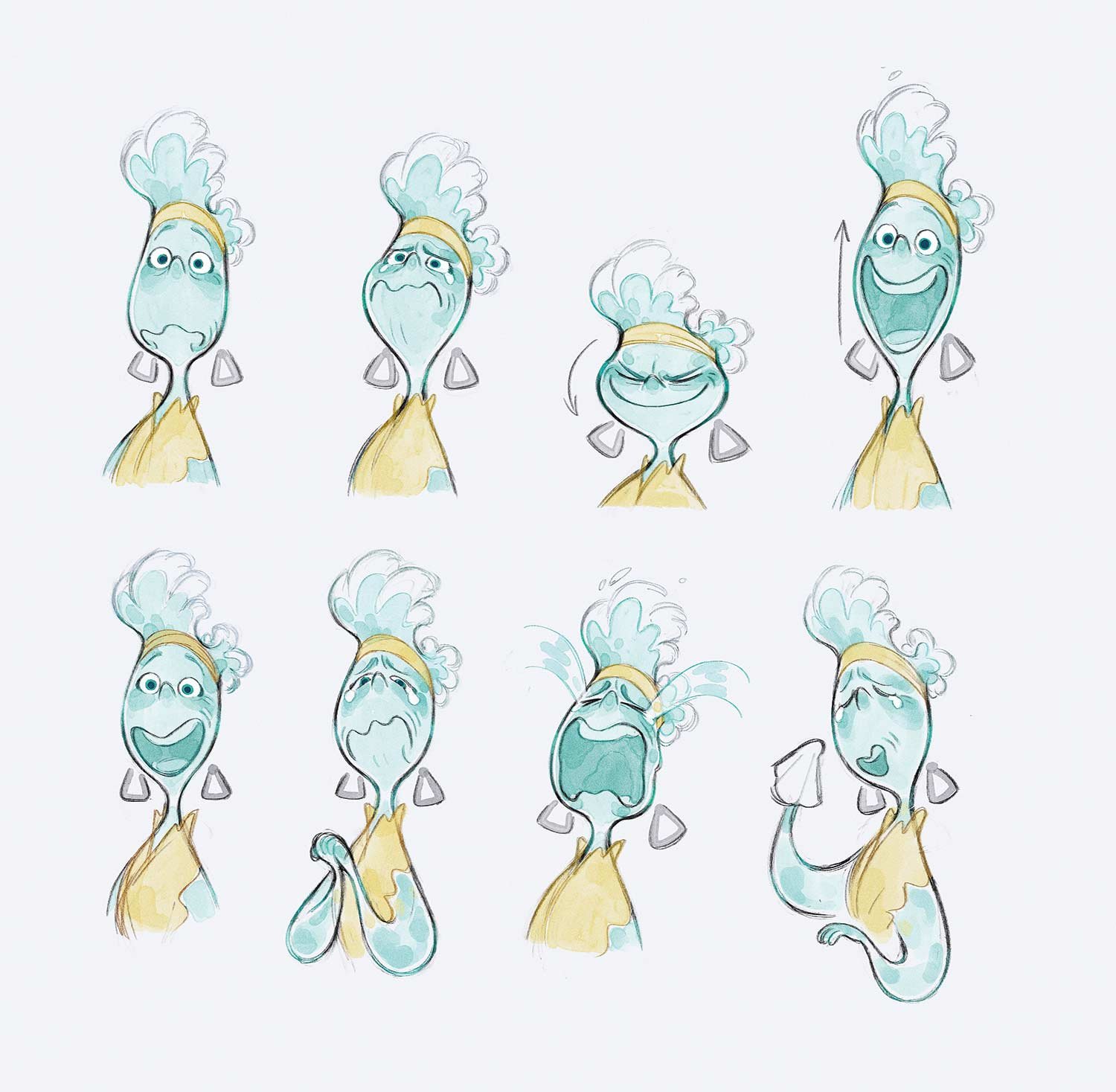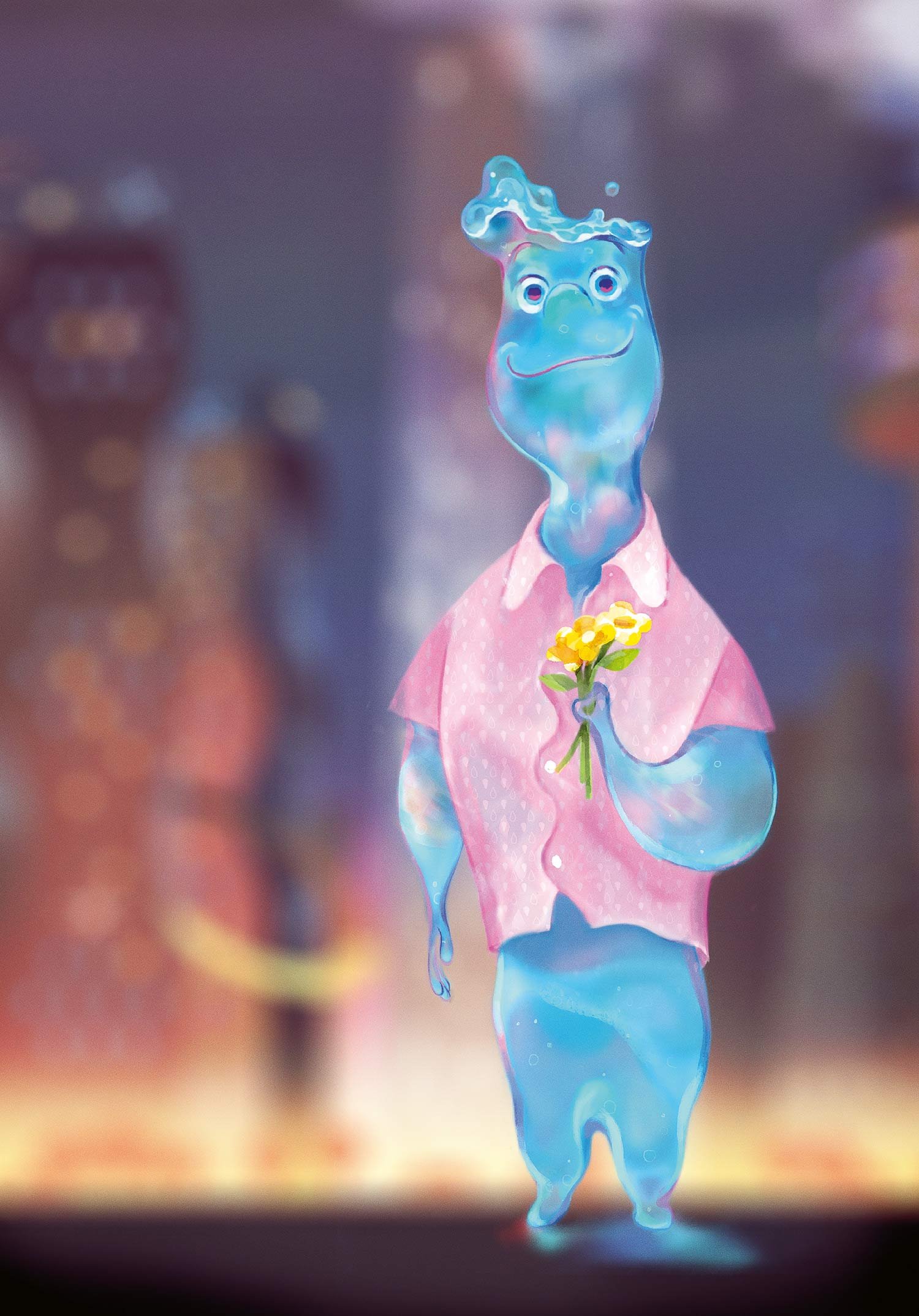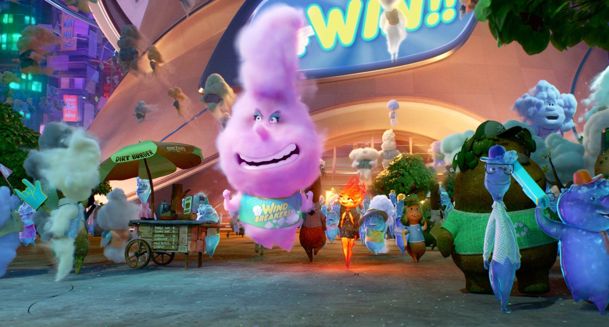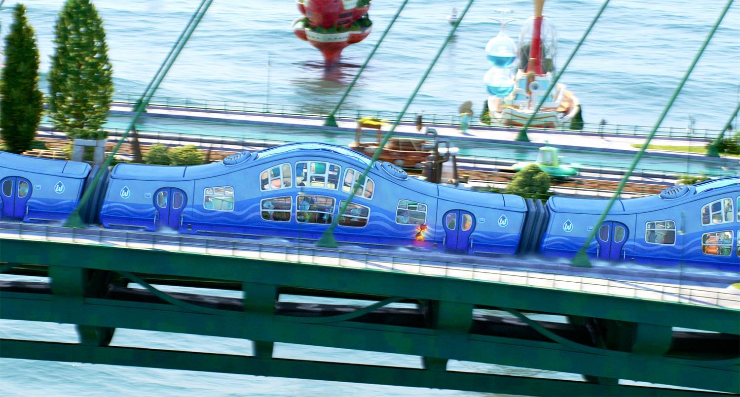 Element City, like a lot of large cities, is made up of districts. Firetown, which was the last to be established, is home to Ember, her family and many Fire characters. The rest of the city has dedicated districts for Water, Air and Earth—though since those elements have been there for generations, the areas are more diversified. Since the city itself was founded by Water elements, a canal system serves as the central mode of transportation—aptly called the Wetro—though each element has introduced their own methods of moving about the city over the years. “It’s not supposed to be a melting pot, really,” Shank says. “We didn’t want to create this homogenous world. We wanted to celebrate all these different cultures and characters living and working together.”