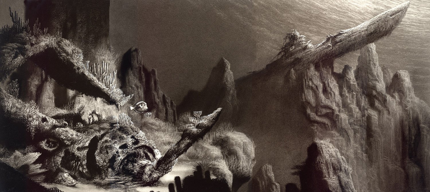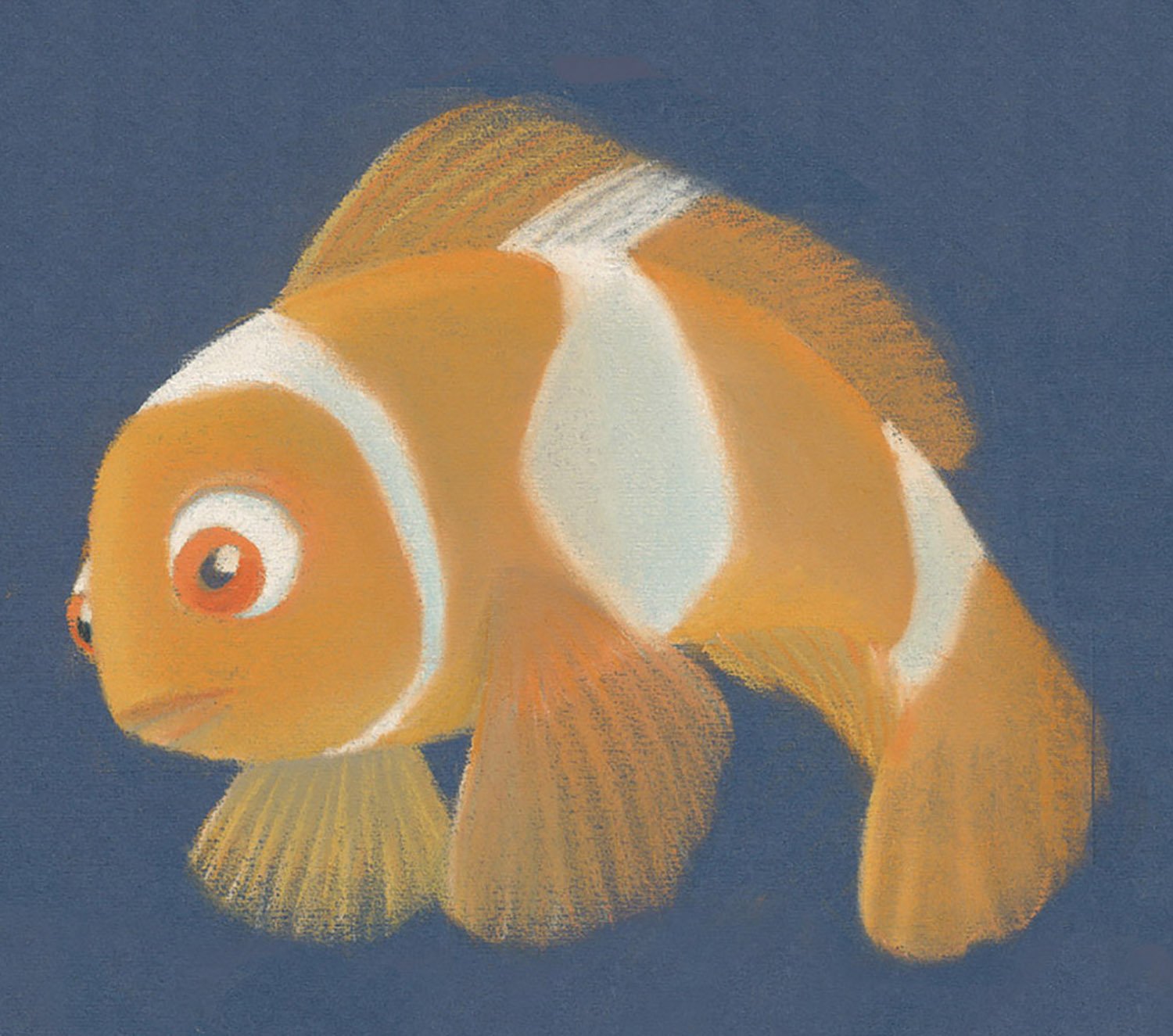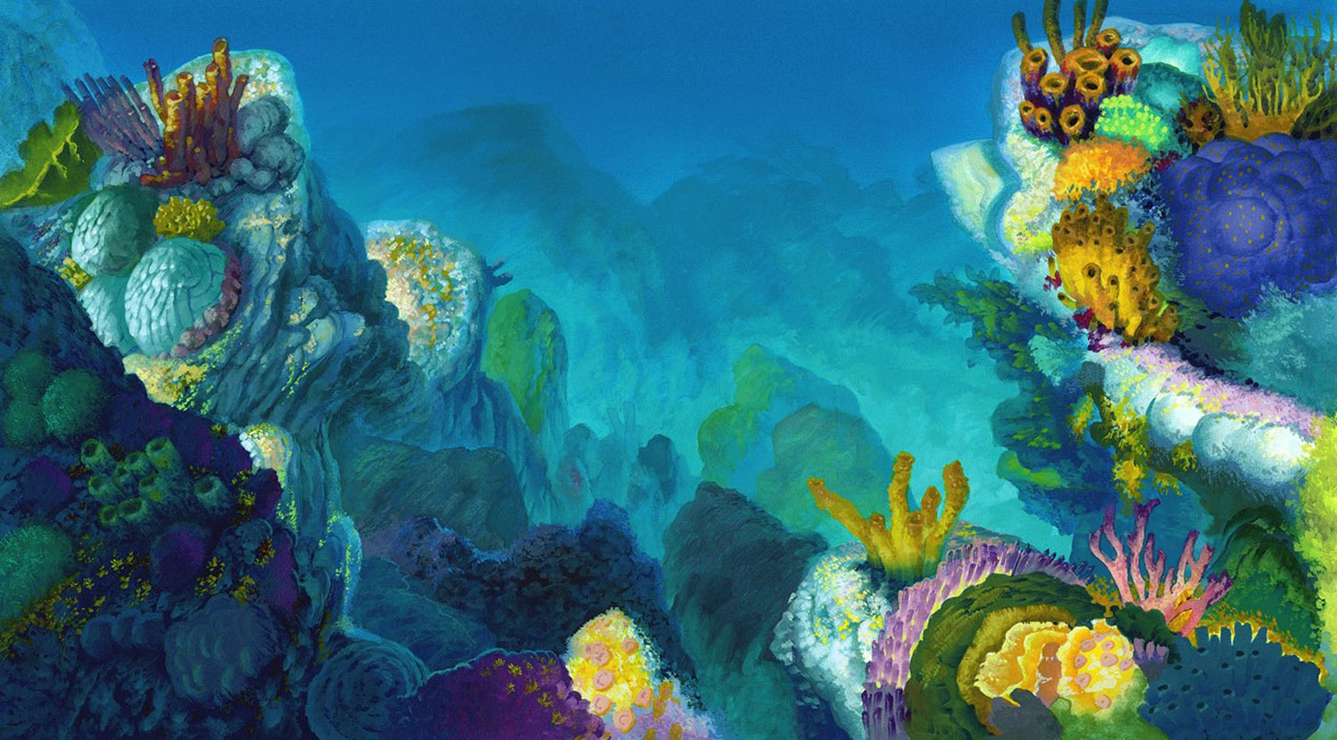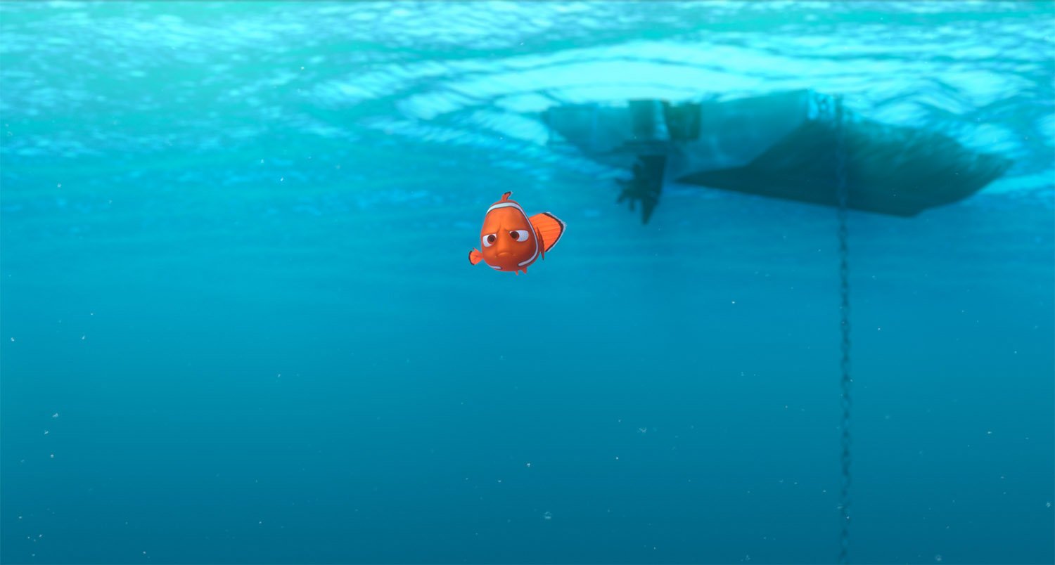 For Finding Nemo, Production Designer Ralph Eggleston started with the vibrant palette of the underwater reef, among the most naturally colorful environments on Earth, then shifted to an increasingly minimalist and ominous palette as Marlin and Dory descend into the murky depths of the ocean on an increasingly perilous journey.
