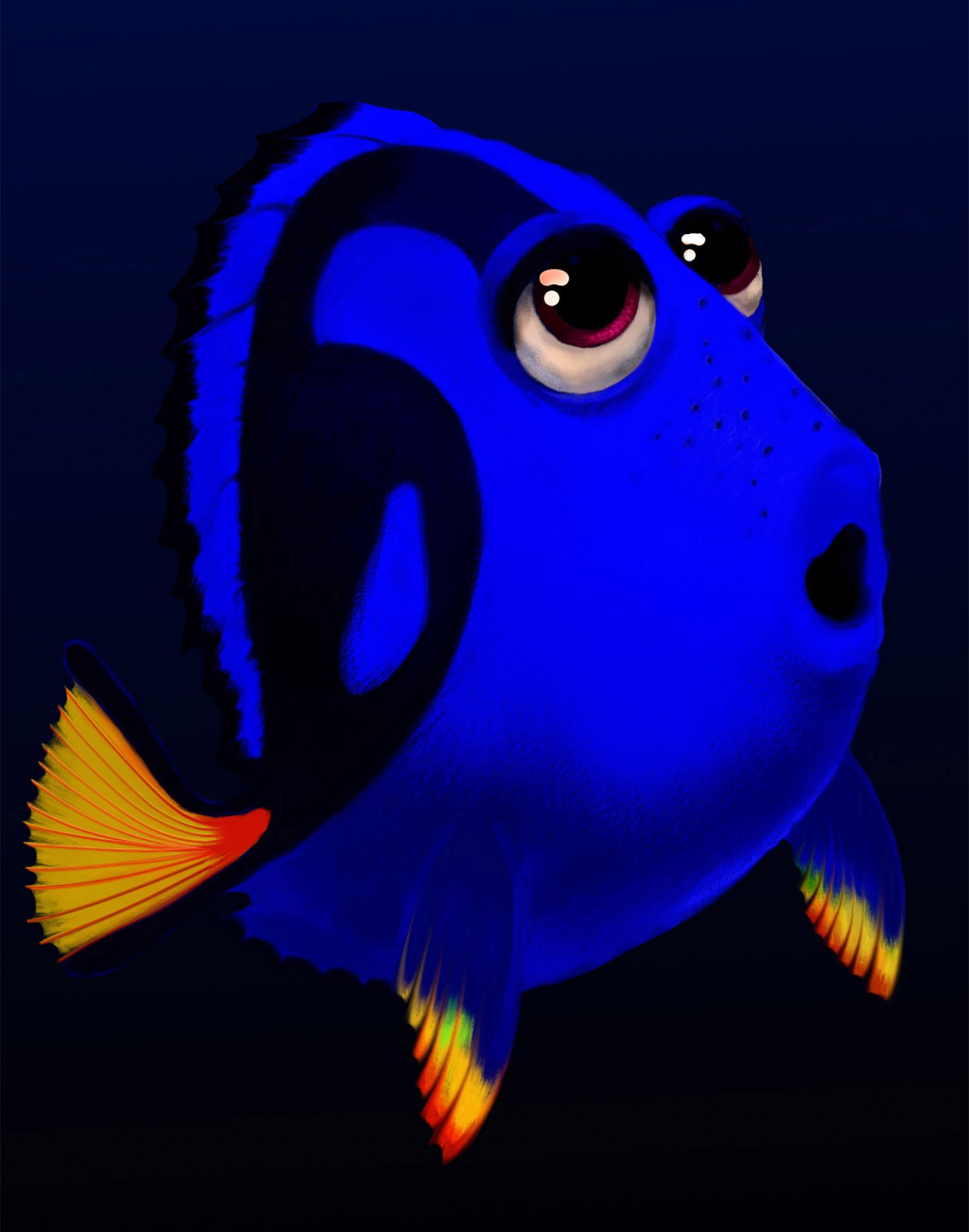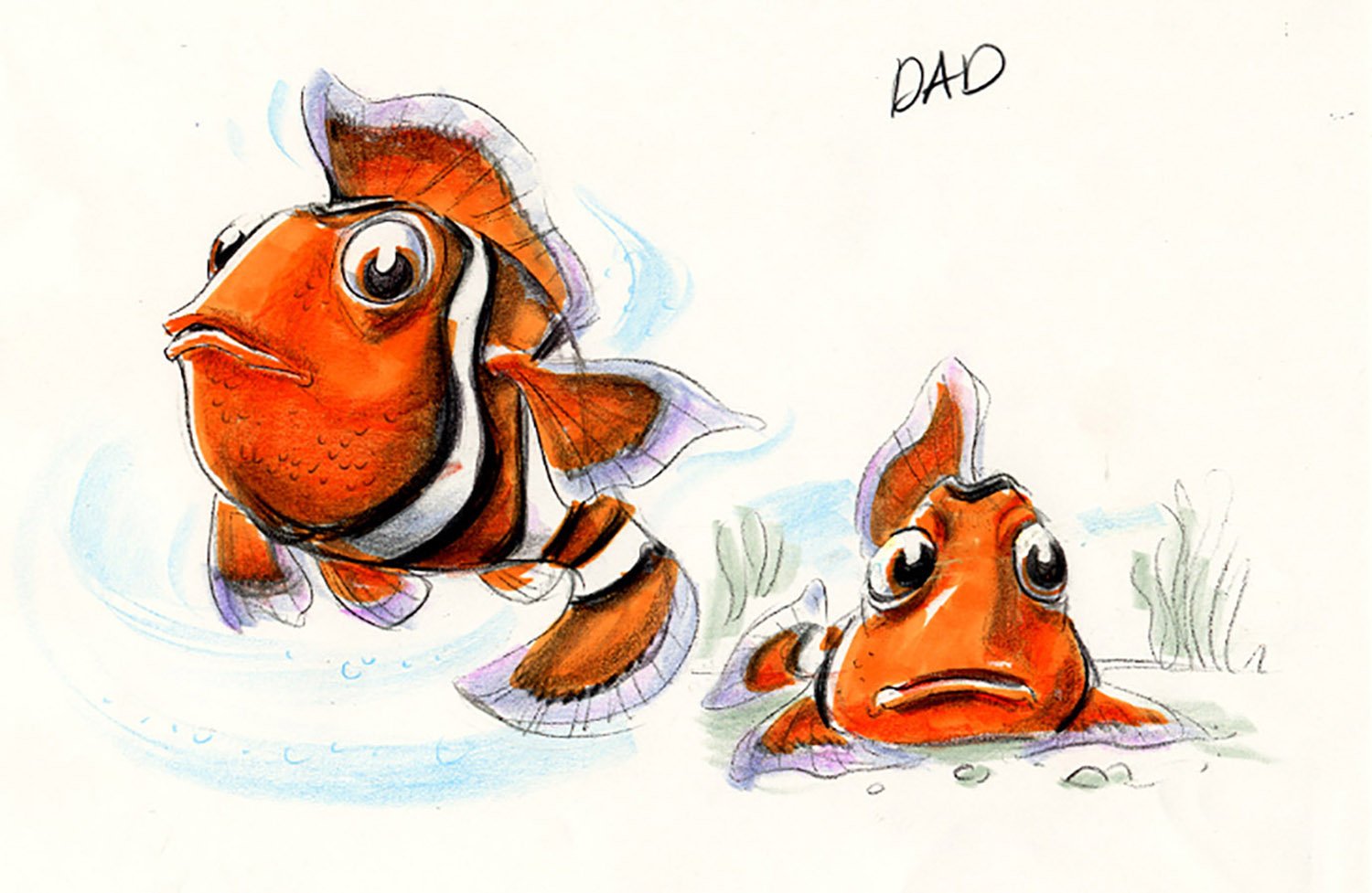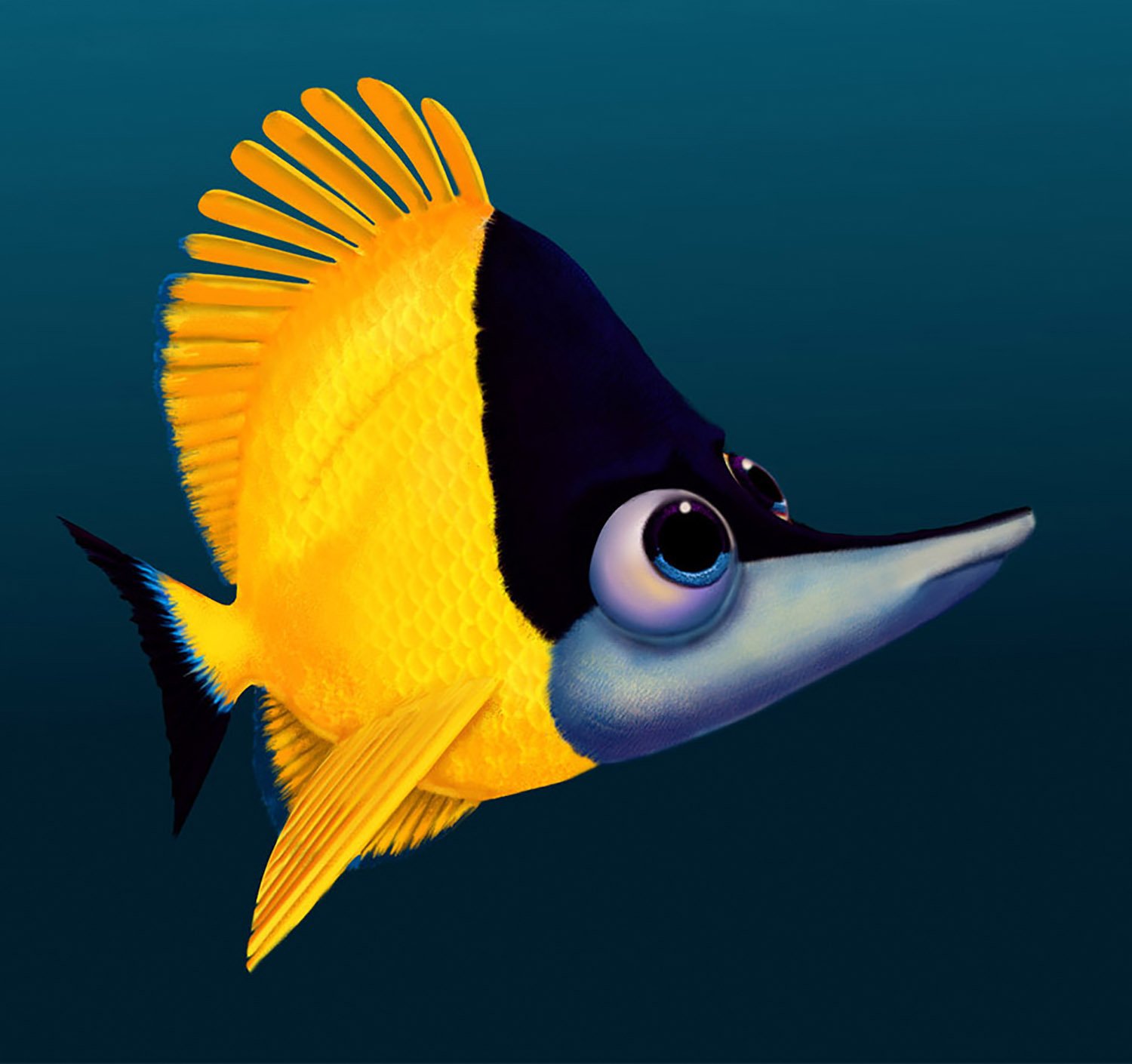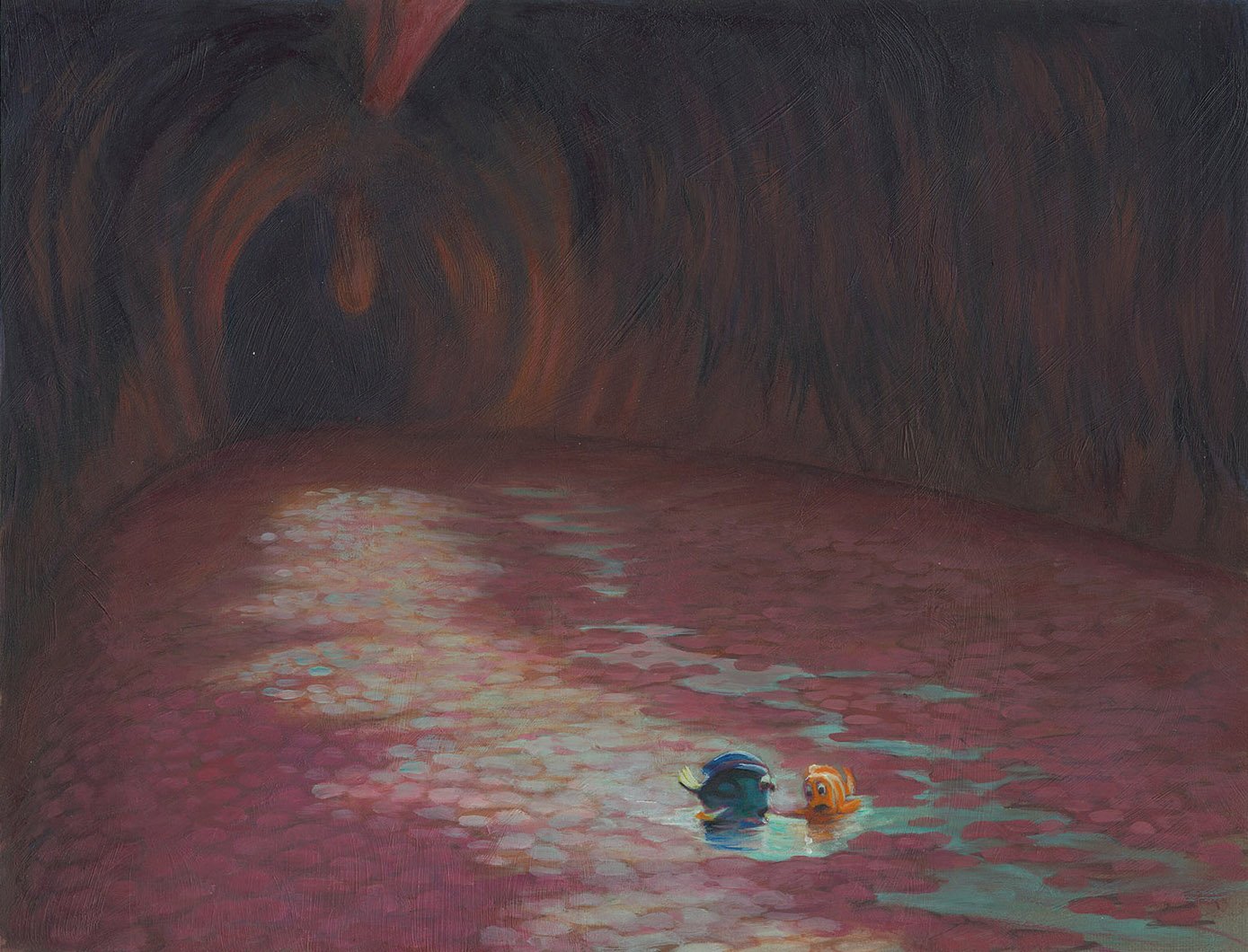 For Finding Nemo, Production Designer Ralph Eggleston started with the vibrant palette of the underwater reef, among the most naturally colorful environments on Earth, then shifted to an increasingly minimalist and ominous palette as Marlin and Dory descend into the murky depths of the ocean on an increasingly perilous journey.