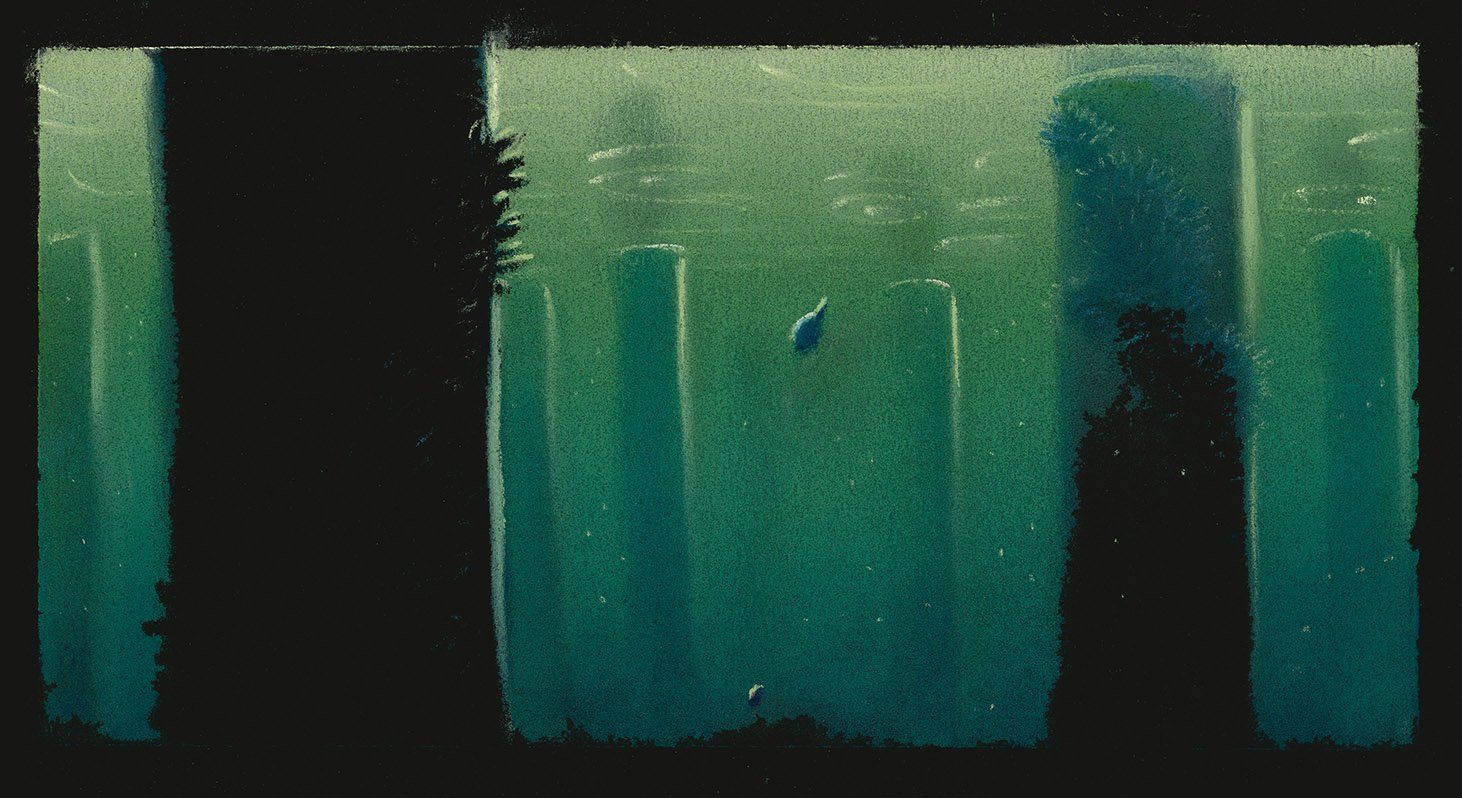 How do you construct a set out of thousands of gelatinous, translucent animals? “We spent a lot of time with Ralph’s (Eggelston) pastels, watched a lot of underwater footage taken in Palau in the South Pacific, and also went to visit the jellyfish exhibit at the Monterey Bay Aquarium to better understand what jellyfish look like and how they really move,” explains Supervising Technical Director Oren Jacob.“In the end this is one of the most beautiful scenes in the movie, and one of the scariest, too.”