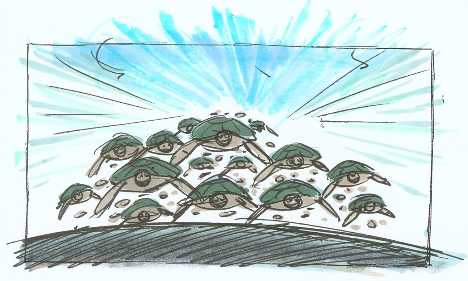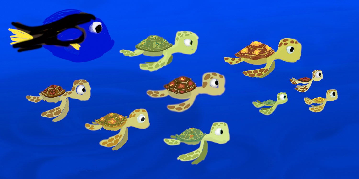 It’s not often that an ocean current plays a role in a movie, but the real-life East Australian Current (EAC) had compelling qualities. A colorful underwater highway favored by migrating fish and sea turtles, the EAC follows a path of hundreds of miles before reaching Sydney Harbor, providing a handy template for both the Pixar art and story teams.