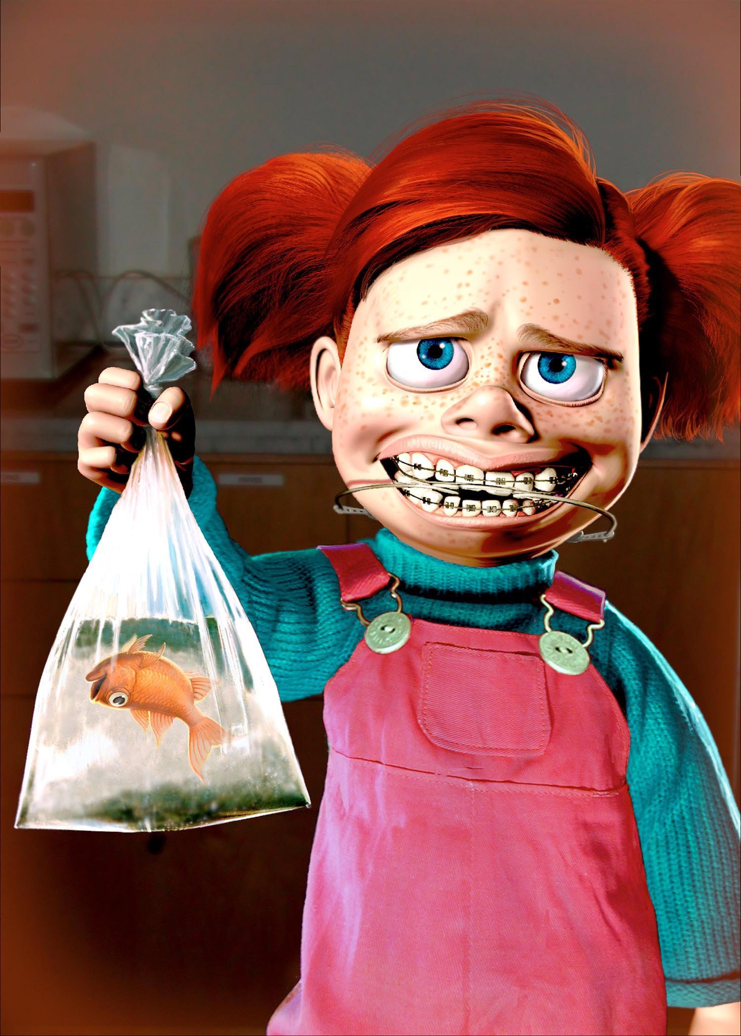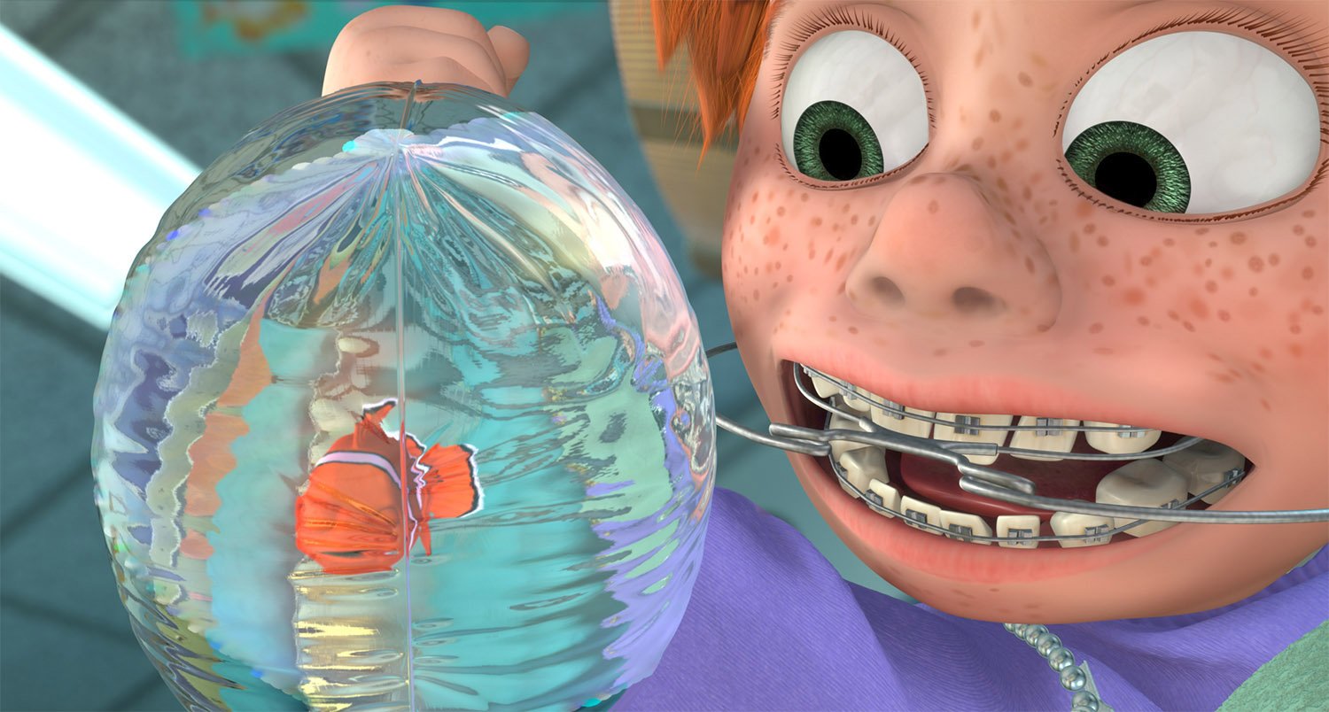 Don't be angry with the dentist for taking Nemo—from his point of view, he was rescuing a struggling fish destined to be eaten. The dentist's niece Darla, on the other hand, can't seem to shake her habit of shaking the bags containing her fishy gifts.