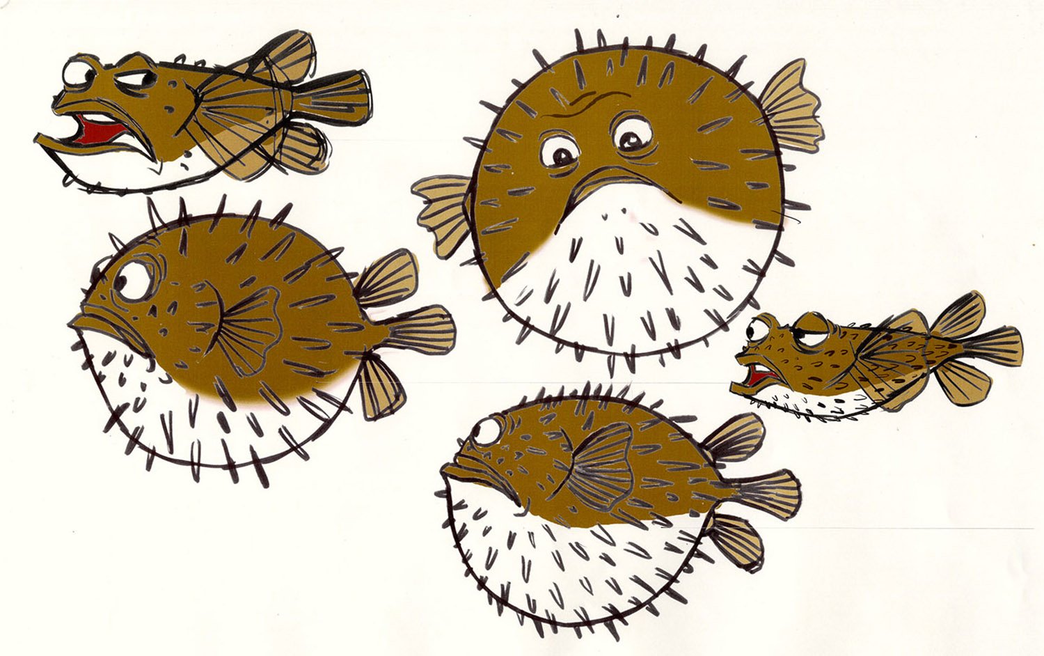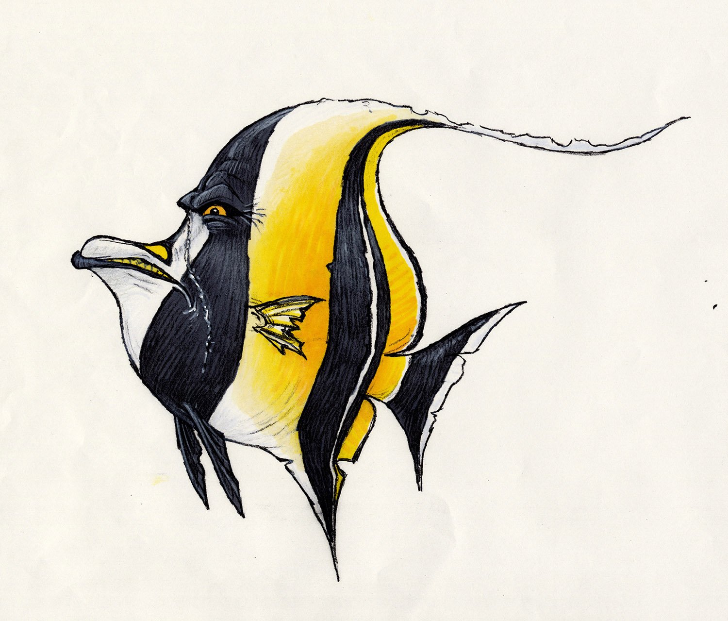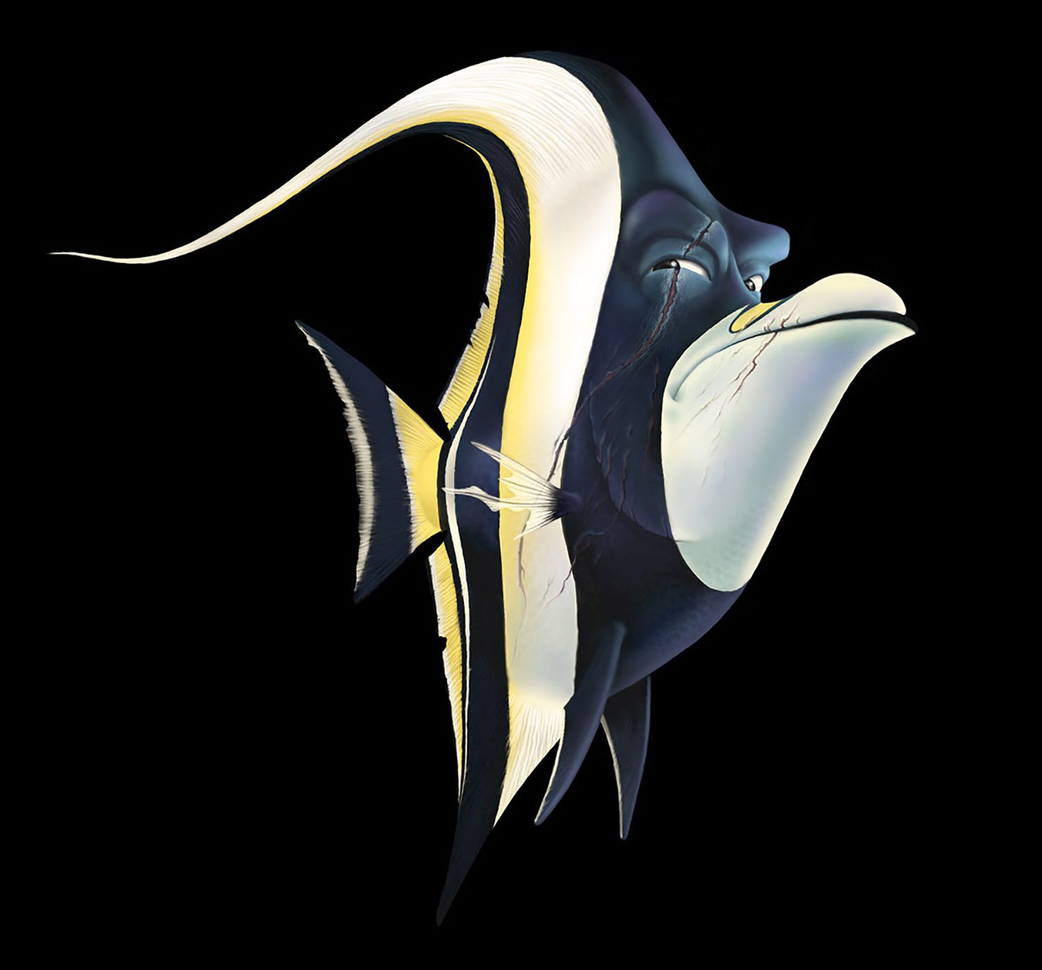 Gill is the maverick of the dentist’s office fish tank. He is the leader of an eclectic gang of fish, who hang on his every word and are drawn to his magnetic personality. This tough, scarred, one-finned fish was raised in the ocean, but taken at a young age to live in a tank. Surrounded by fish who have spent their entire lives in “the box,” Gill alone feels the pull to be free. Though he dreams of one day breaking out and returning to the ocean, his failed escape attempts have broken his spirit. With Nemo's arrival to the tank, Gill is inspired again to find a way back to the sea.