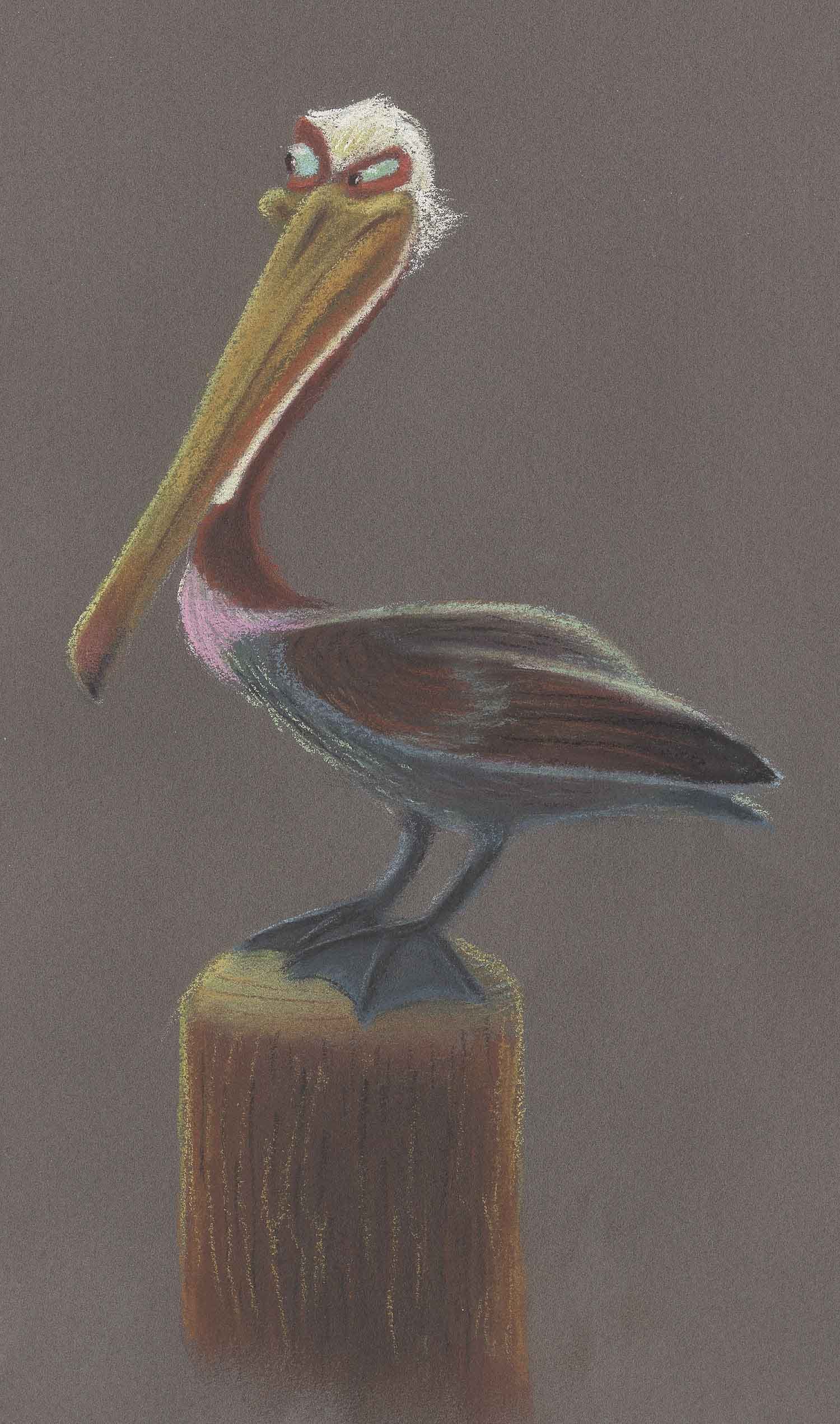 Nigel is a tough old local bird. He likes to hang out on the docks with his other pelican mates and carry on. But Nigel has a guilty pleasure the others don’t know about; he loves to sneak off and spend hours in the dentist office window, diagnosing dental problems with his fish friends in the tank.