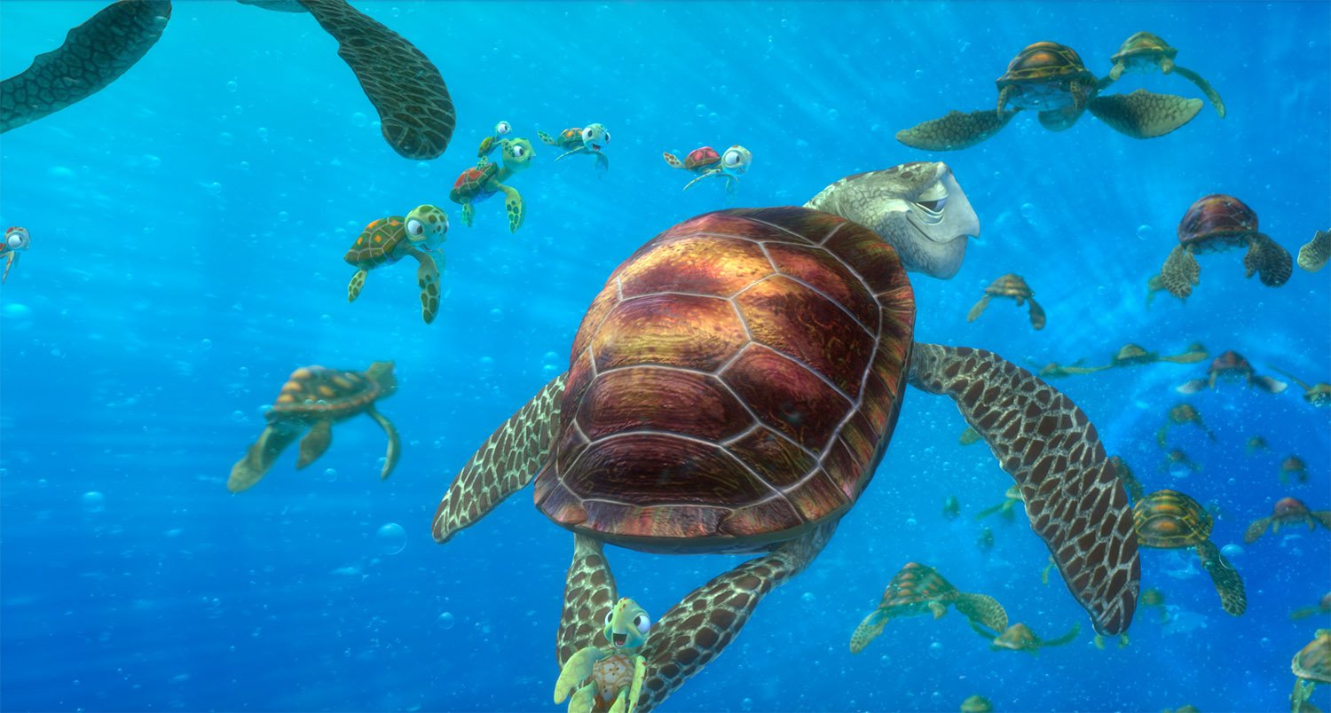 Crush and his offspring Squirt know how to chill and go with the flow, especially the one created by the East Australian Current. The two have a righteous bond that's totally sweet. After 150 years of living in the ocean, Crush knows a thing or two about being a good parent.