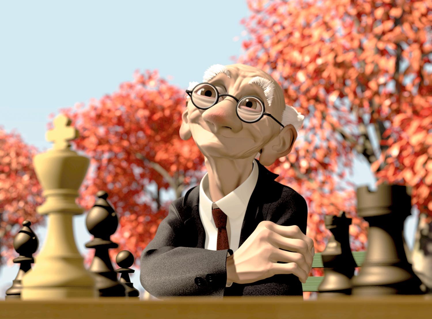 An aging codger named Geri plays a daylong game of chess in the park against himself. Somehow, he begins losing to his livelier opponent. But just when the game's nearly over, Geri manages to turn the tables.