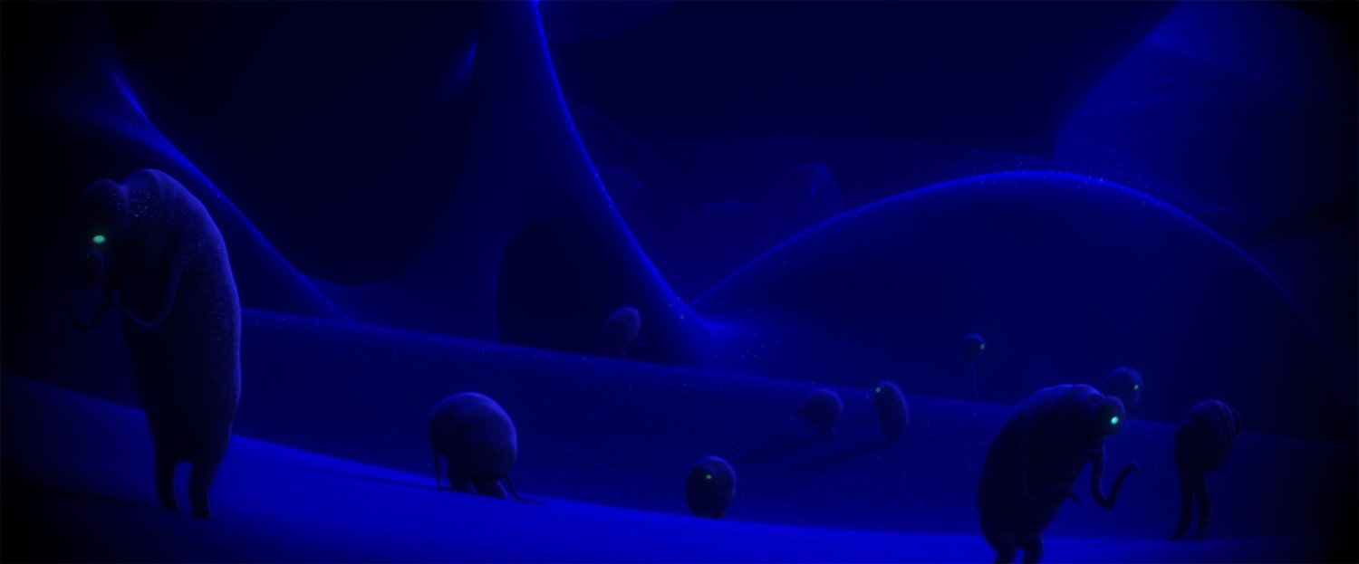 The astral sand needed to move in a specific way, particularly as Moonwind’s ship sailed through it. Enter effects supervisor Bill Watral and his team. “The idea behind the whole place is that it’s a mental construct of what you think it is when you’re there—it can be anything,” says Watral. “As the boat pushes the sand, it moves in a physical way that’s not based in reality and freezes, taking on the shapes of the surrounding environment. We also authored a sparkle pass for everything. We carefully control where those sparkles are around the world.”