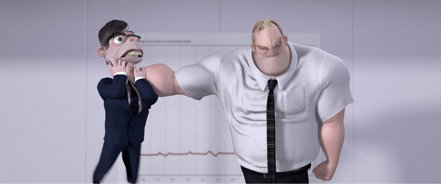 Patrolling the cubicles of Insuricare, it’s Gilbert Huph’s job to make work as drab and unfulfilling as possible, especially when an underling like Bob Parr towers over him.