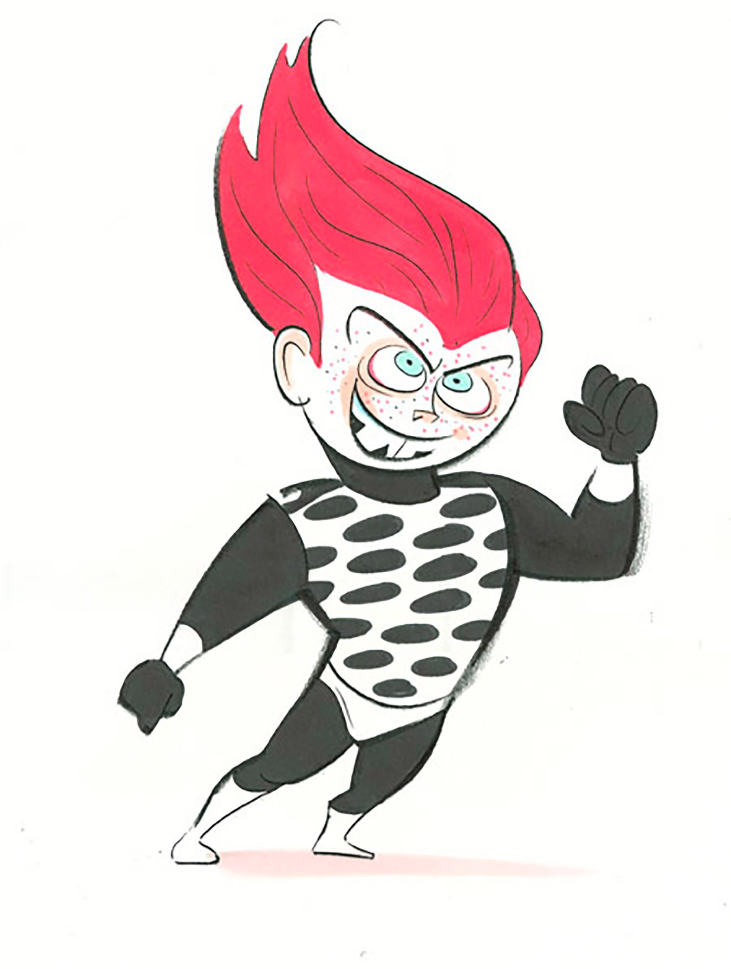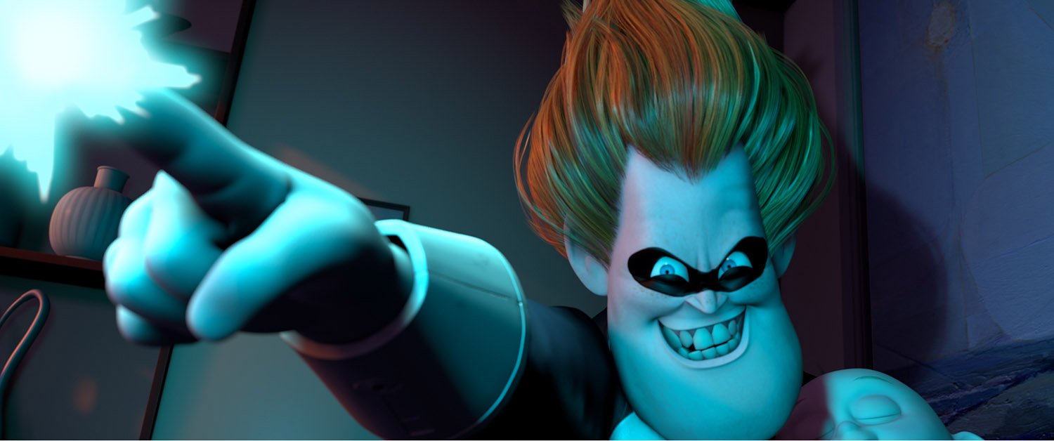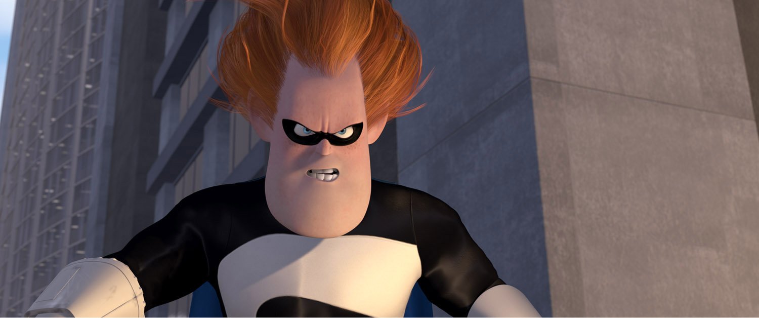 Syndrome wasn’t born with superpowers, but envied the attention and admiration the Supers received. Of all the Supers, Mr. Incredible embodied everything Syndrome desired: strength, fame, and popularity. Highly intelligent and cunning, Syndrome now spends his days on a remote island on the other side of the world inventing gadgets and robots to carry out a diabolical plot.