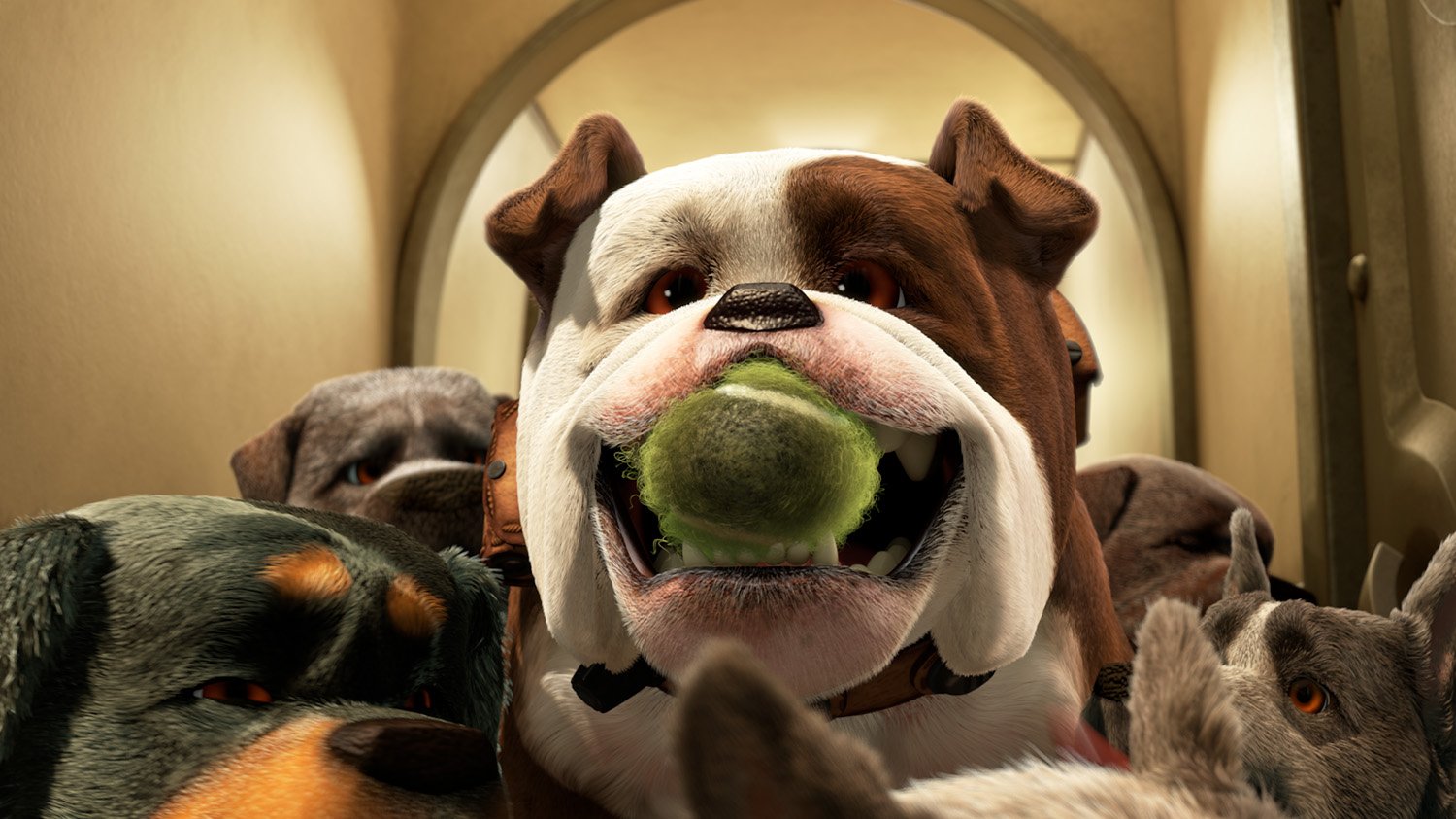 Alpha, the pack leader, is a menacing-looking, black-as-night Doberman Pinscher with authority entrusted to him by their master that no one dares question. Beta, a tough Rottweiler, is Alpha's lieutenant, and Gamma, a rough-and-tumble bulldog, is his hench-dog. Nothing will detract the pack from its mission—except maybe