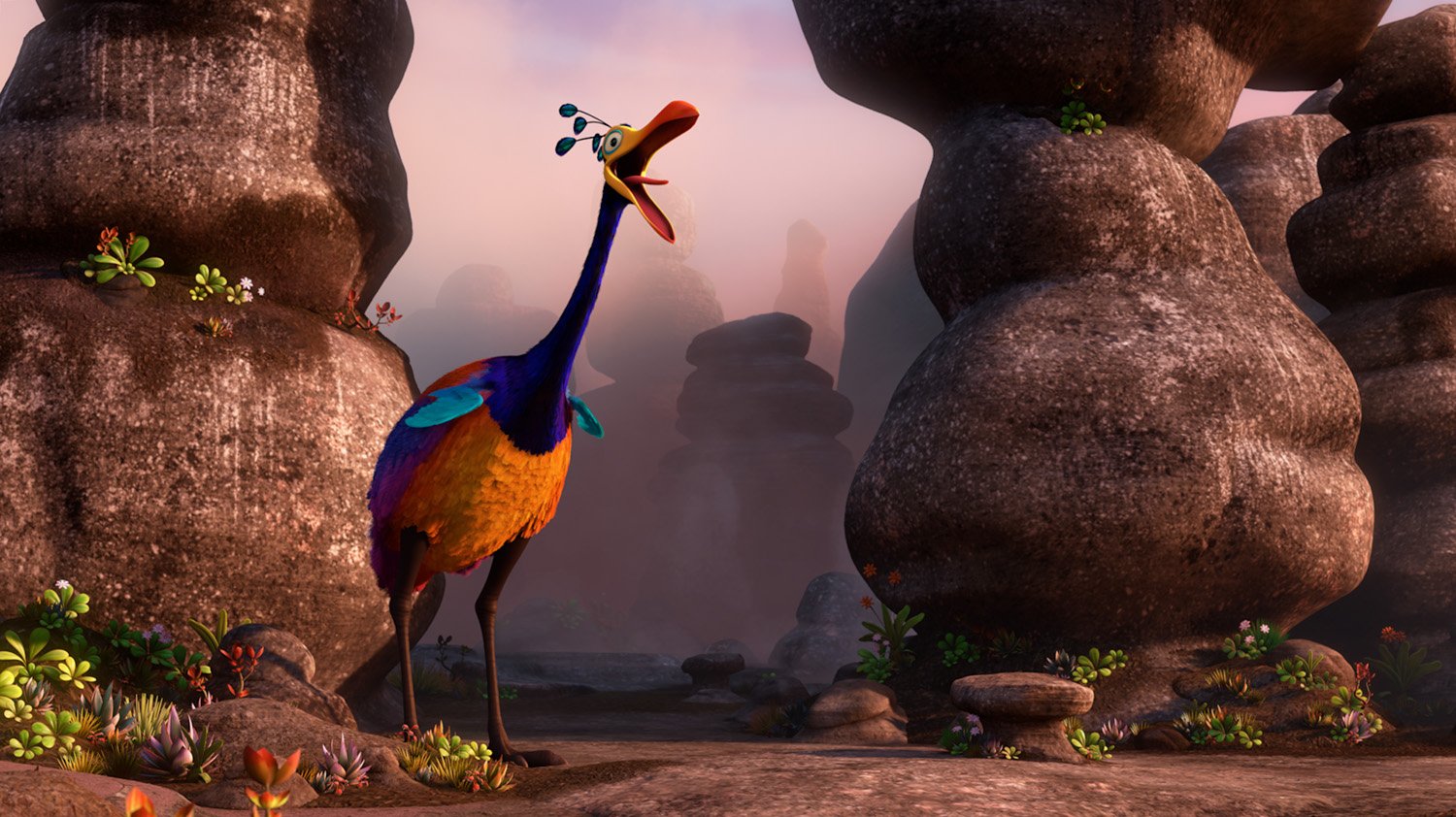 Named by Russell, this extremely rare, 13-foot-tall flightless bird is hidden from the world in her remote Paradise Falls habitat. With brilliant iridescent feathers and a long, flexible neck, Kevin is exceptionally fast and nimble despite her size. In fact, the massive bird often gets into some very curious and seemingly impossible positions.