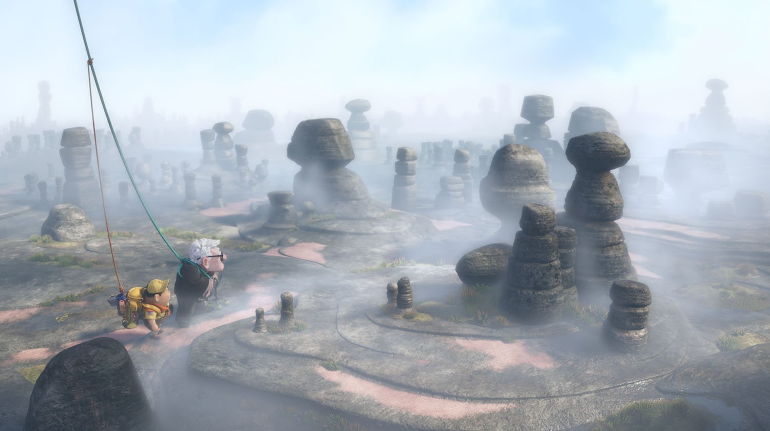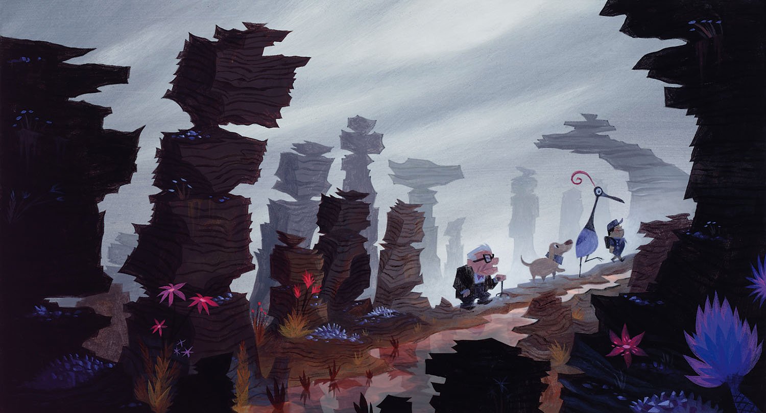 Carl’s epic adventure required a destination both fantastic and plausible. When Director Pete Docter happened on a television documentary about the mysterious tepuis of South America, he discovered the perfect world to explore. The massive mile-high plateaus in Venezuela are among the most uncharted places on Earth. Pixar sent a team of artists for a look, and the film's bizarre rock formations, exotic flora, towering waterfall, and fog-shrouded labyrinth can be traced to tepui landscapes. So fantastic were the images, Docter wondered if the very real Tepuis might look too incredible.
